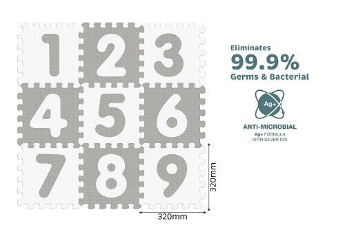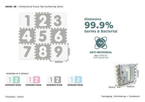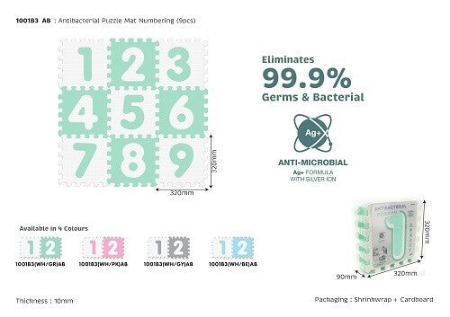 - Anti-Bacterial Puzzle Mat that contains anti-microbial Ag+ formula with Silver Ion that eliminates 99.99% germs.