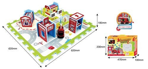 - Discover the fascinating world of firefighters with this colorful foam puzzle mat including DIY puzzle and fire engine.