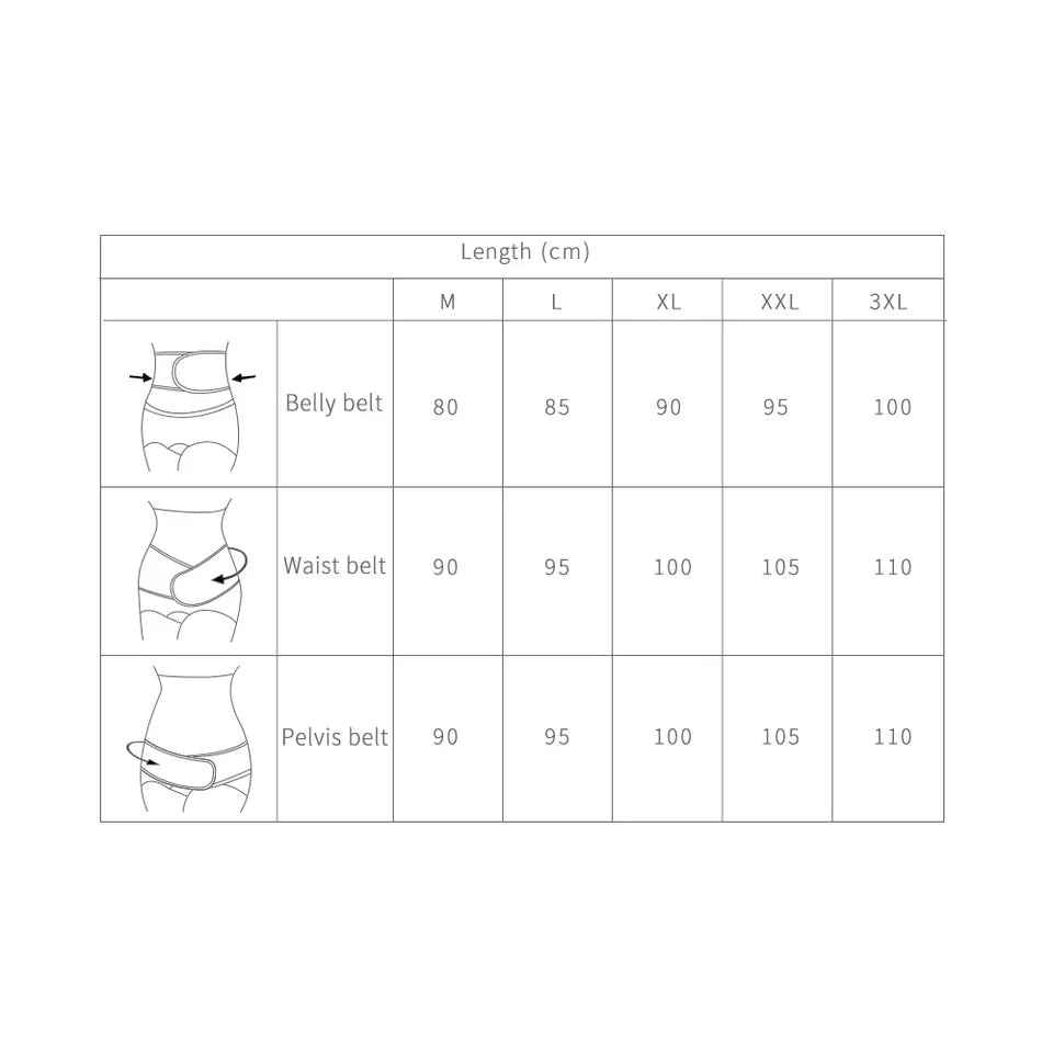 A Mother is born with the birth of a baby and we know how much care and love the new mom needs. Take care of the postpartum belly with this 3-in-1 belly belt that helps you day and night to get back into shape and tighten the loose skin. The combo of these 3 belts is all what you need for the entire post-partum healing process. Each of the belt effects specific area of your tummy., Belt A: Belly belt- helps getting your stomach and muscles half way back to normal, recommend to use when 1/7 days after vaginal birth. B: Waist belt- helps flatten the belly, redefine the waistline, relief back pain, combined the use with stomach belt will accelerate the effectiveness, recommend to use 1/6 weeks after vaginal birth or stitch healing from c- section., C: Pelvis belt- helps speeding up the contraction of pelvis and stretched to fit the natural curves of your body, recommend to use7-42 weeks after Natural birth/Stitch healing after c-section. We recommend you combine exercise and calorie control with the use of this product, you will see a BIG difference in a few days. Size chart: Please follow pictorial description