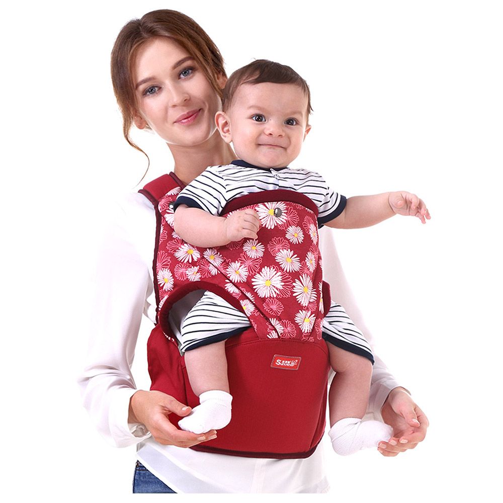 A baby carrier, bottle holder and pouch for keeping your stuff, all-in-one, Sunveno Baby Carrier is baby and parent friendly accessory. The Sunveno carrier has an added anti-slip hip-seat that attaches to the body of the carrier, forming a solid base for the baby or child to sit on, allowing little ones to sit in the 'M' or 'froggy' position. Designed to disperse the baby weight between the shoulder straps, waist belt and the hip seat, so that you never feel tired while returning from the local market or a short trip. , , This breathable carrier comes with a beautiful Carry Gift Box which makes it a perfect choice for new born or baby shower gifts.