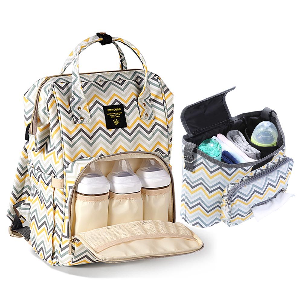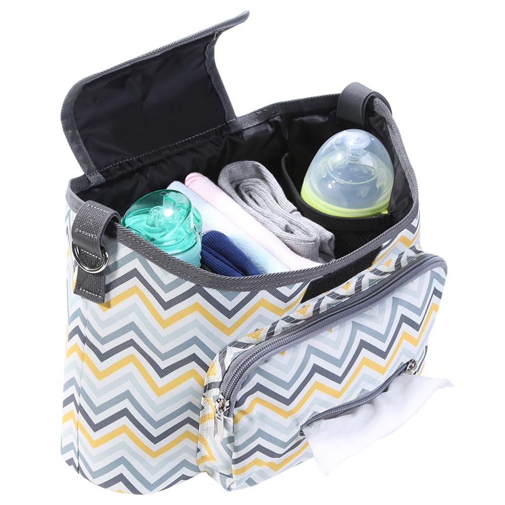 For the Stylish and Traveller Mom's, the same favourite Sunveno diaper Bag with a USB Port. Now you can charge phone with a powerbank,while your phone is outside the bag. This Sunveno diaper bag comes with beautiful colors and a Yellow Wave Print to bring out that amazing freshness and zeal in you! The wide zipper opening with metal support and beautifully crafted golden zippers give this bag a royale look. Despite all the space and accessories, this a light weight bag weighing only 820 gms, Not even a Kg! The unique features being the back opening zipper and tissue/wipes holder side pocket, both of these allow you easy access when you need tissues and clothes handy. A key chain holder helps you to access your house and car keys, when your one hand is busy carrying your little munchkin. Use it for twins or siblings, you would love to pack your bags on the go! Combo consists of a convenient stroller organiser by Sunveno. This stroller organizer is a SIMPLE & SMART SOLUTION that keeps your little one happy and your stroll relaxing & enjoyable. JUST ATTACH, ADJUST & GO.