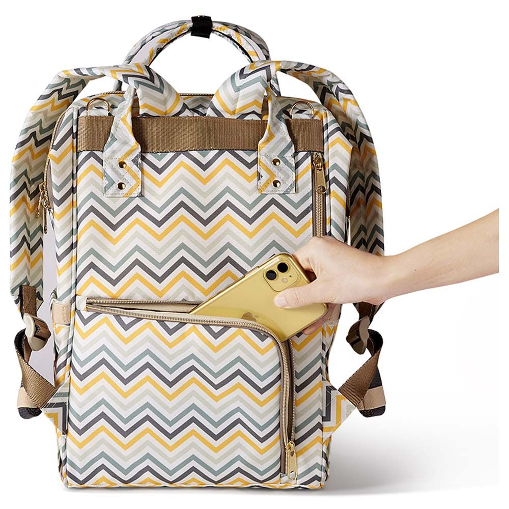 - Back Opening: There's an opening in the back of the bag with a waterproof pocket. You can easily put things in the bottom of the bag. Wet cloth or diapers can be put in the waterproof pocket separated from dry cloths and diapers.