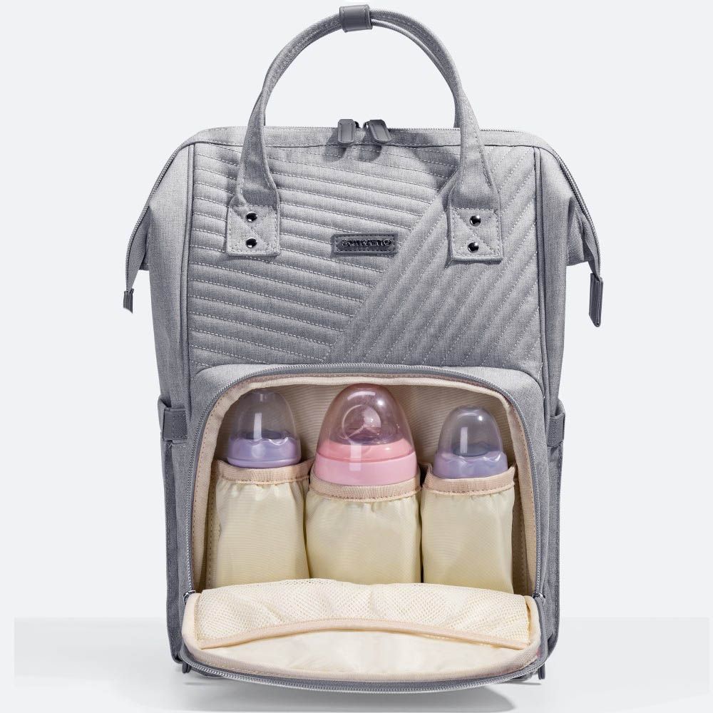- Three insulated bottle holders in the front keep milk bottles warm or cold for about 2-4 hours, and can accommodate both wide-neck and slim-neck bottles.