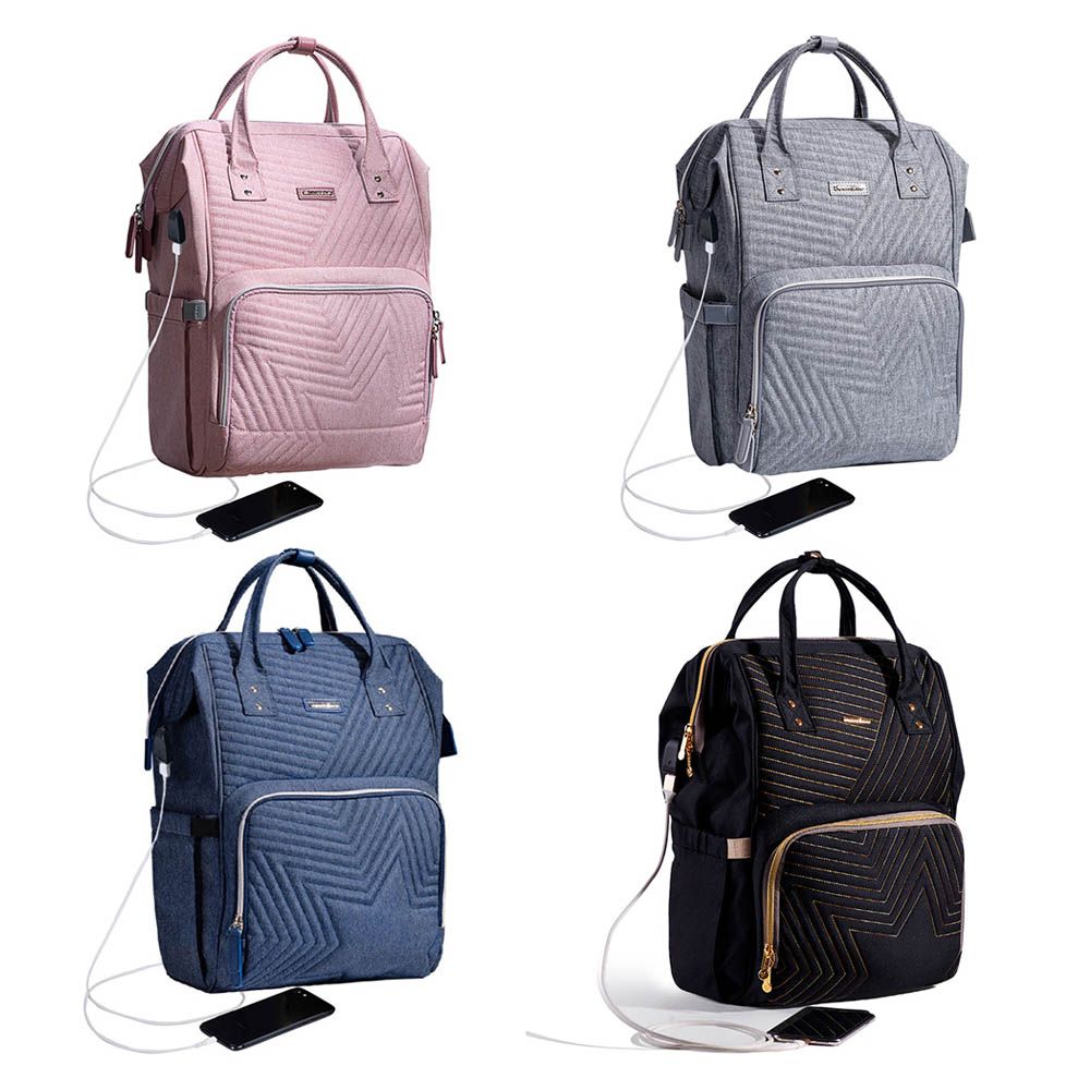 For the Stylish and Traveller Mom's, the same favourite Sunveno diaper Bag with a USB Port. Now you can charge phone with a powerbank,while your phone is outside the bag. This Sunveno diaper bag comes with beautiful colors to make this extremly spacious bag, turn heads around. The wide zipper opening with metal support and beautifully crafted golden zippers give this bag a royale look. Despite all the space and accessories, this a light weight bag weighing only 820 gms, Not even a Kg! The unique features being the back opening zipper and tissue/wipes holder side pocket, both of these allow you easy access when you need tissues and clothes handy. A key chain holder helps you to access your house and car keys, when your one hand is busy carrying your little munchkin. Use it for twins or siblings, you would love to pack your bags on the go