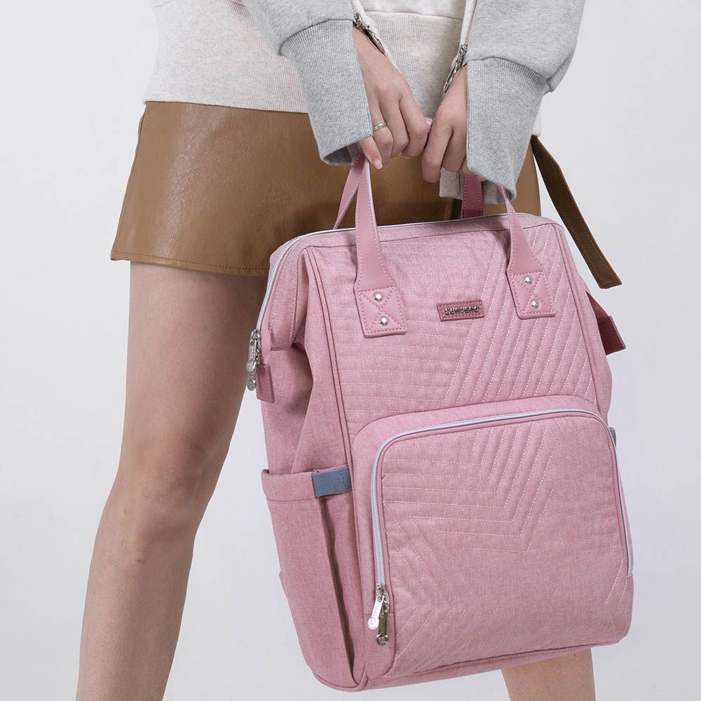 - The bag offers both backpack and handbag options for versatile carrying. Padded shoulder straps provide all-day comfort, and rivet-reinforced hand straps add extra durability.