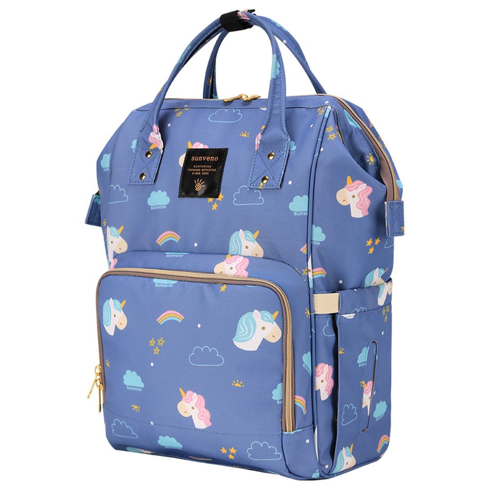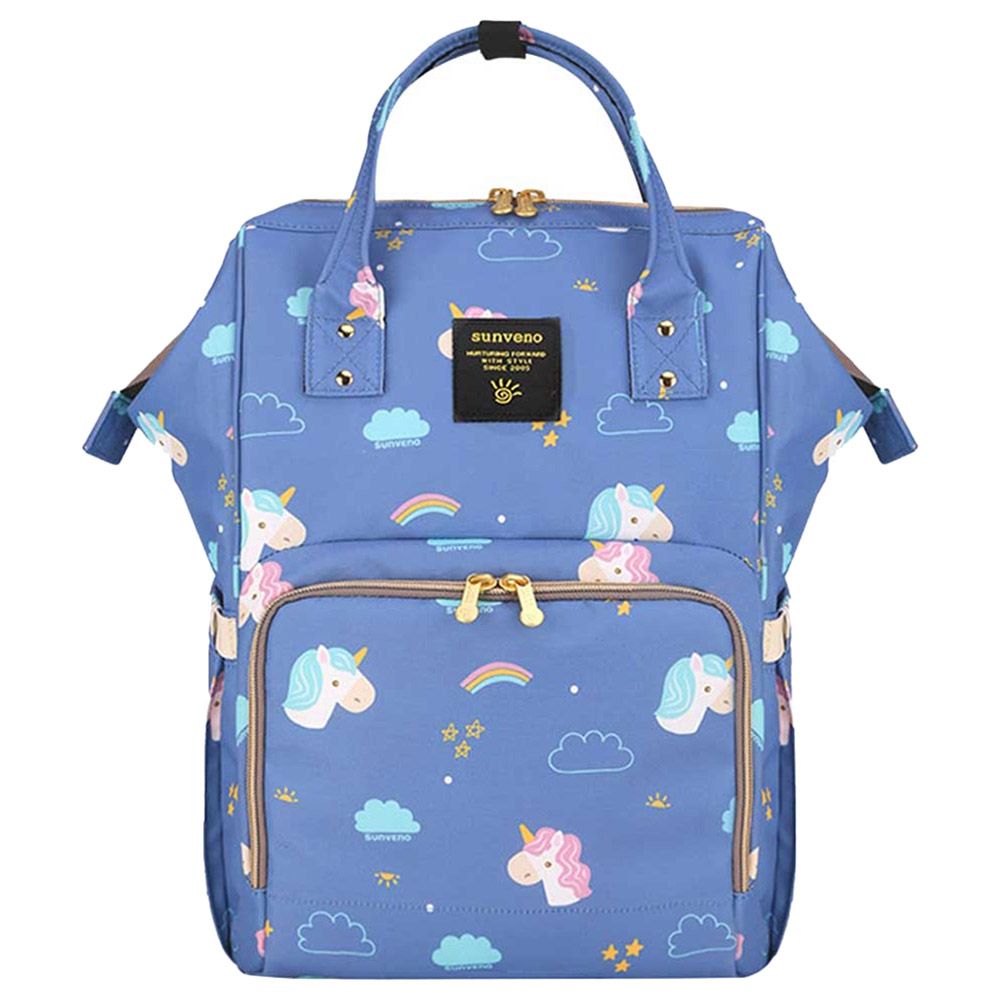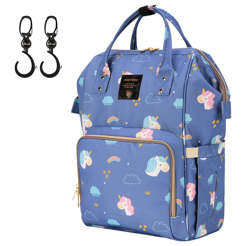 This Sunveno diaper bag comes with beautiful colors to make this extremely spacious bag, turn heads around. The wide zipper opening with metal support and beautifully crafted golden zippers give this bag a royale look. Despite all the space and accessories, this a light weight bag weighing only 850 gms., Not even a Kg. The unique features being the back opening zipper and tissue/wipes holder side pocket, both of these allow you easy access when you need tissues and clothes handy. A key chain holder helps you to access your house and car keys, when your one hand is busy carrying your little munchkin. Use it for twins or siblings, you would love to pack your bags on the go. You also get a set of Robust Strong Sunveno Stroller Hooks.