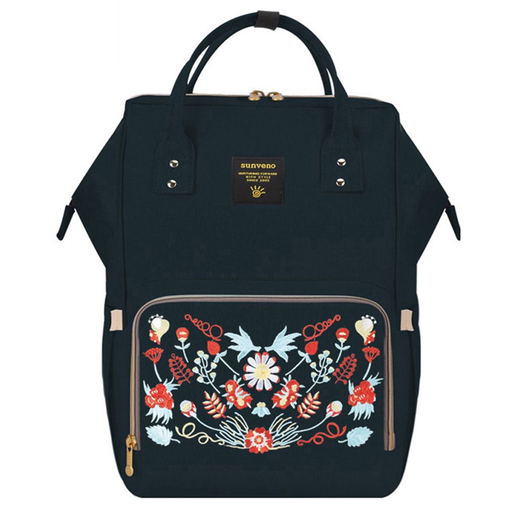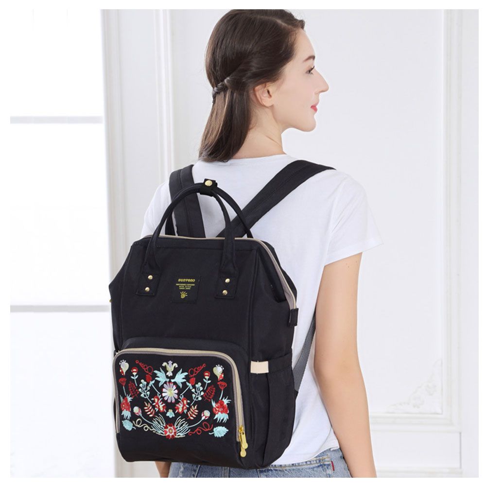 For the Stylish and Traveller Mom's, this choice is the best. This Sunveno diaper bag Black Embroidery comes with beautiful colors to make this extremly spacious bag, turn heads around. The wide zipper opening with metal support and beautifully crafted golden zippers give this bag a royale look. Despite all the space and accessories, this a light weight bag weighing only 750 gms, Not even a Kg! The unique features being the back opening zipper and tissue/wipes holder side pocket, both of these allow you easy access when you need tissues and clothes handy. A key chain holder helps you to access your house and car keys, when your one hand is busy carrying your little munchkin. Use it for twins or siblings, you would love to pack your bags on the go! The New Version has the anti-theft pocket with embroided flowers. Elegant and beautiful bag will make you fall in love with it