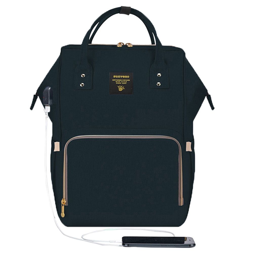 For the Stylish and Traveller Mom's, the same favourite Sunveno diaper Bag with a USB Port. Now you can charge phone with a powerbank,while your phone is outside the bag. This Sunveno diaper bag comes with beautiful colors to make this extremly spacious bag, turn heads around. The wide zipper opening with metal support and beautifully crafted golden zippers give this bag a royale look. Despite all the space and accessories, this a light weight bag weighing only 820 gms, Not even a Kg! The unique features being the back opening zipper and tissue/wipes holder side pocket, both of these allow you easy access when you need tissues and clothes handy. A key chain holder helps you to access your house and car keys, when your one hand is busy carrying your little munchkin. Use it for twins or siblings, you would love to pack your bags on the go