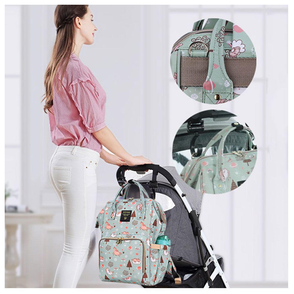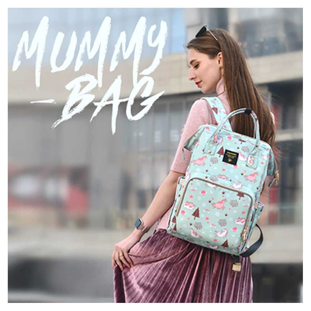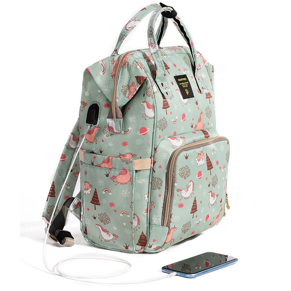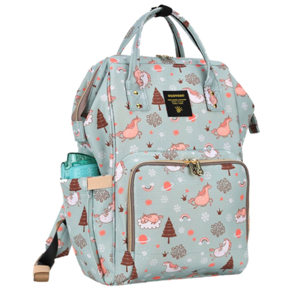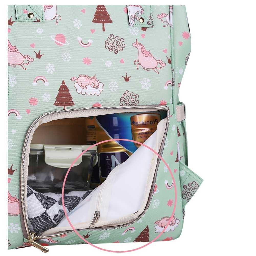 For the stylish and traveller mom's, this choice is the best. This sunveno diaper bag green dream sky comes with beautiful colors to make this extremly spacious bag, turn heads around. The wide zipper opening with metal support and beautifully crafted golden zippers give this bag a royale look. Despite all the space and accessories, this a light weight bag weighing only 750 gms, not even a kg! The unique features being the back opening zipper and tissue/wipes holder side pocket, both of these allow you easy access when you need tissues and clothes handy. A key chain holder helps you to access your house and car keys, when your one hand is busy carrying your little munchkin. Use it for twins or siblings, you would love to pack your bags on the go! The new version has the anti-theft pocket with beautiful prints. Elegant and beautiful bag will make you fall in love with it