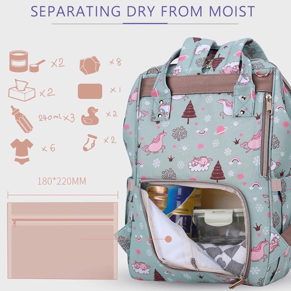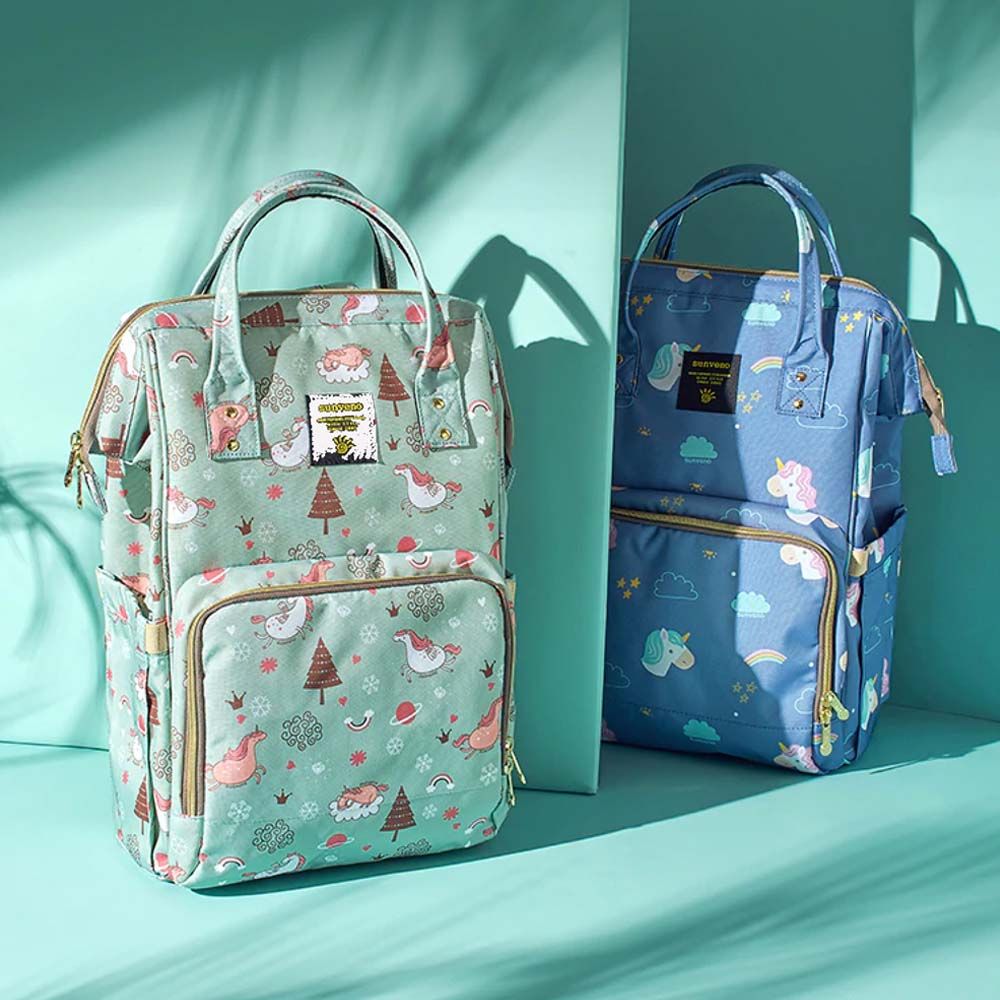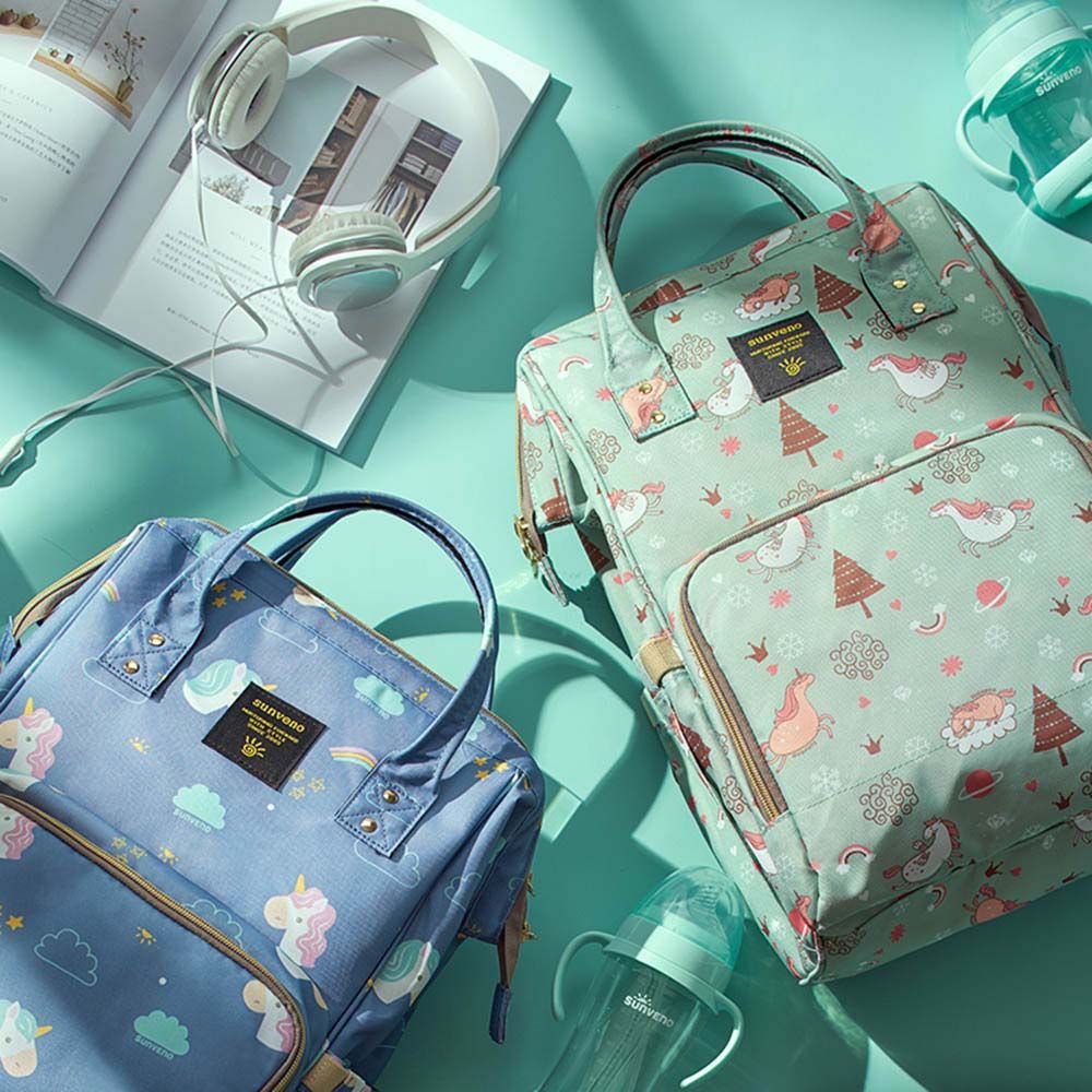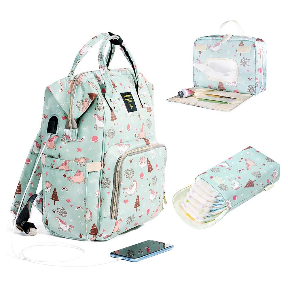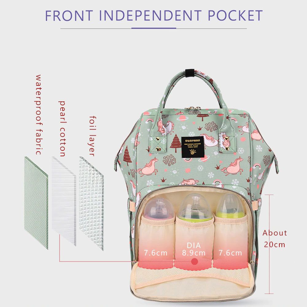 Packing Includes : 1 x sunveno diaper bag with usb - green dream, sunveno diaper changing clutch kit medium - green, 1 x sunveno diaper organizer wet/dry bag - green