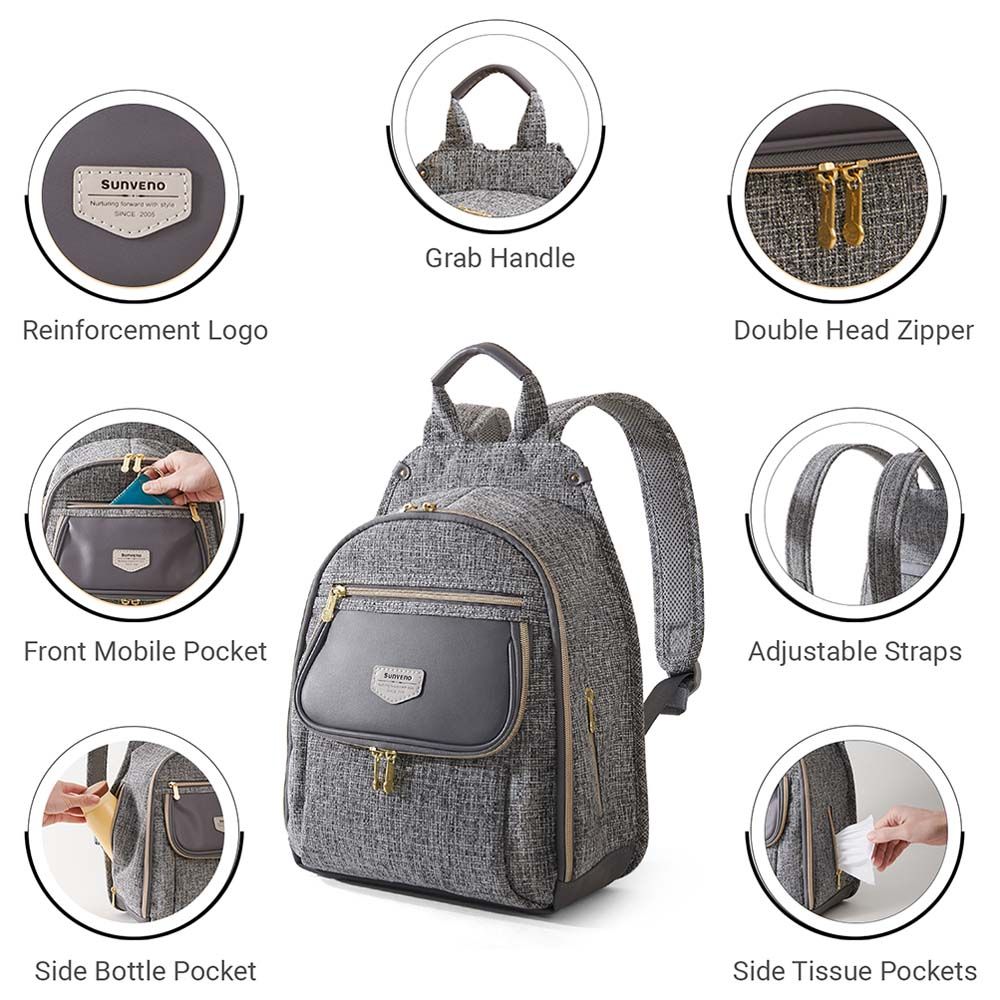 Sunveno Fashion Compact Diaper Backpack - Grey