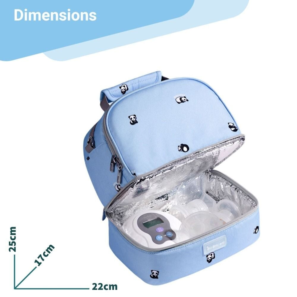Sunveno Love Little Me Insulated Bottle/Lunch Bag is a unique dual compartment insulated bag is what everyone desires for, be it a new mom who wants to carry her baby's milk in one space and some snack/fruit in other place or a dad who wants to use it as a lunch box! The bag has interior lining of food grade aluminium foil for great thermal resistance for cold and hot temperatures. The beautiful attractive designs with dirt-proof fabric which can be easily cleaned, this bag features two sections which allows you to store hot and cold food separately. You can use the top compartment for baby milk bottles and the lower one for storing the breast pump. Featuring high capacity, this makes a great lunch bag for Office, Work, Day care and School Lunch. The top compartment could take at least 3 milk bottles. It's roomy for even the whole day food that you need or carry the breast pump at work for expressing. Additional detachable/adjustable shoulder strap is provided so that you can carry has cross body, shoulder bag or a handbag. Lovely gift for loved one's papas, mumz, back to school and birthday!