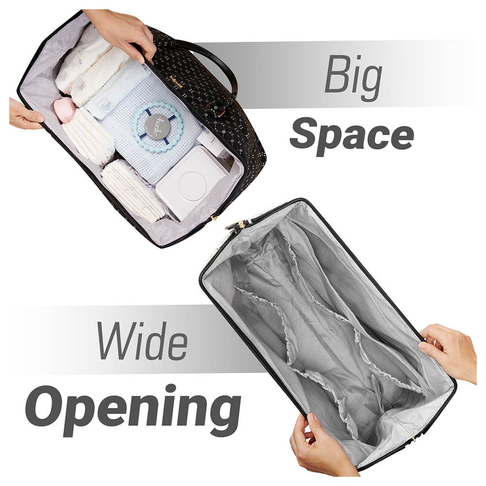 - Easy-wipes side pocket with zipper and inner dispenser keeps wipes clean and ready.