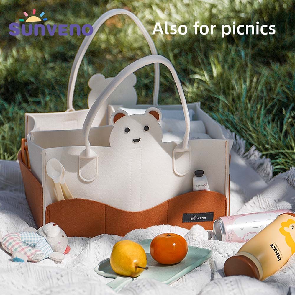 Sunveno Diaper Caddy Organizer is a multipurpose organizer to help you to put those lovely Rompers, Nappy, Wipes, Cream, Baby toys, Pacifiers, Milk Bottles and everything you need to have an easy access! This is a portable multipurpose organizer which can be easily folded and packed in your bags when on travel or on holidays. The partitions can be repositioned to 1/2/3 according to your needs. Comes with 8 Exterior Pocket, can bear Upto 15kg weight. Carry this on day picnics or in the Car. Comes very handy during those nights when you just want to grab a diaper! A good choice for gifting on baby shower, to a new mum or a birthday.