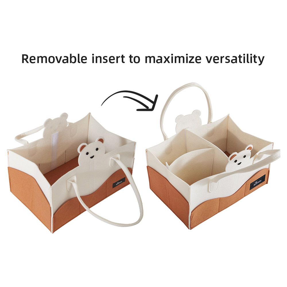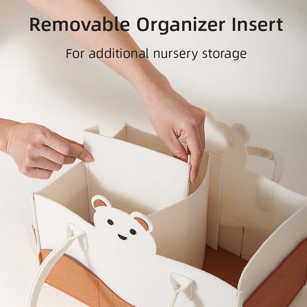 - Customizable interior with a removable divider to fit diapers, bottles, toys, and more