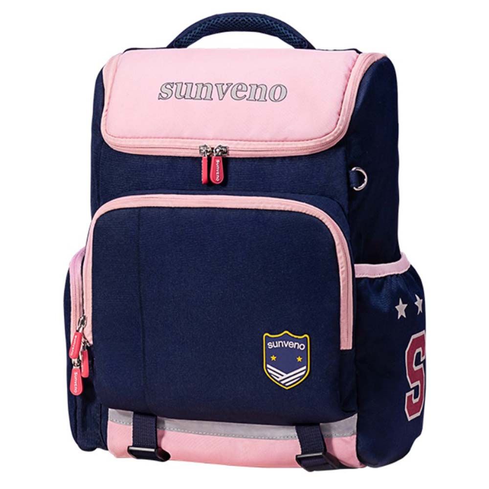 Our Sunveno School Bag series of backpacks carry the same lineage of Style and Functionality, Sunveno is known for. The beautiful design of the front pocket is unique to keep things for easy access. They come with a ID card holder keychain. This backpack has multiple storage compartments and pockets keep everything in its place; Zippers are solid and sturdy, they don't easily break off even with constant use, pullers have a firm grip so sliding the zipper to open or close is easy. These bags are Water - resistant and water proof. The erect stature of the bag makes it ways to take out books and i - pads at the same time keep them safe and in shape. The best feature is the Safety Light Reflecting Strips on the bag, which reflects light and shine in night, very important for your Kids safety. The bottom has belts is like a webbing to maintain the load of the bag to bear the maximum load on bottom and not the child. Extra wide cushioned shoulder straps and S - shape back padding ensures very less load on the kids back. Lovely colors and prints and a great gift for back to school.