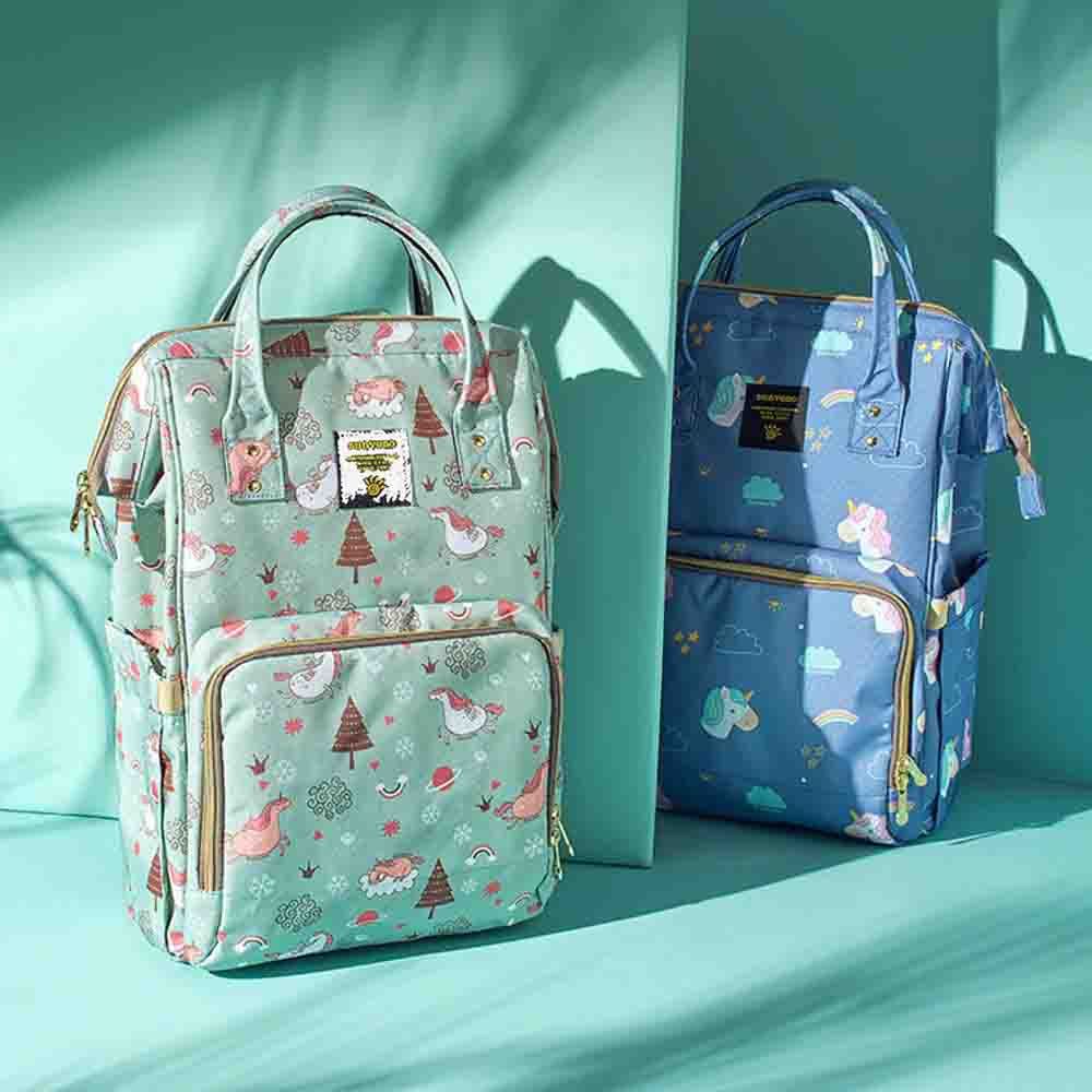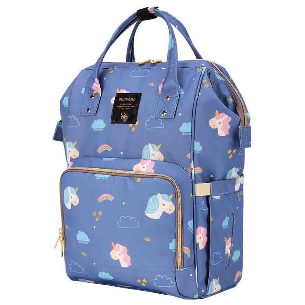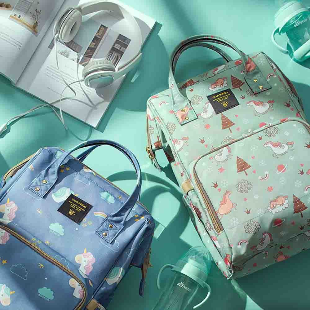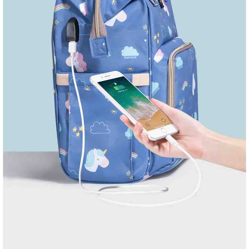 For the Stylish and Traveller Mom's, the same favourite Sunveno diaper Bag with a USB Port. Now you can charge phone with a your phone is outside the bag. This Sunveno diaper bag comes with beautiful colours to make this extremely spacious bag, turn heads around. The wide zipper opening with metal support and beautifully crafted golden zippers give this bag a royale look. Despite all the space and accessories, this a light weight bag weighing only 820 gms, Not even a Kg! The unique features being the back opening zipper and tissue/wipes holder side pocket, both of these allow you easy access when you need tissues and clothes handy. A key chain holder helps you to access your house and car keys, when your one hand is busy carrying your little munchkin. Use it for twins or siblings, you would love to pack your bags on the go