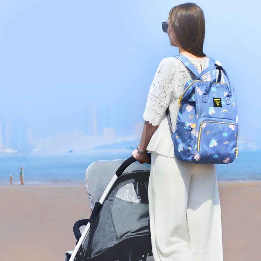 - Back Opening: There's an opening in the back of the bag with a waterproof pocket. You can easily put things in the bottom of the bag. Wet cloth or diapers can be put in the waterproof pocket separated from dry cloths and diapers.