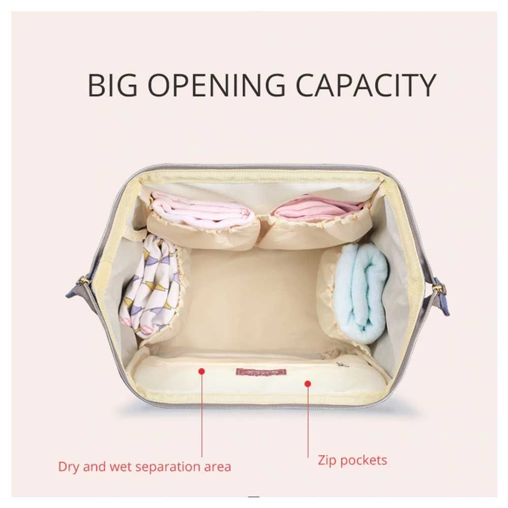 - Multiple inner pockets to store clothes, diapers, baby food, and milk bottles.