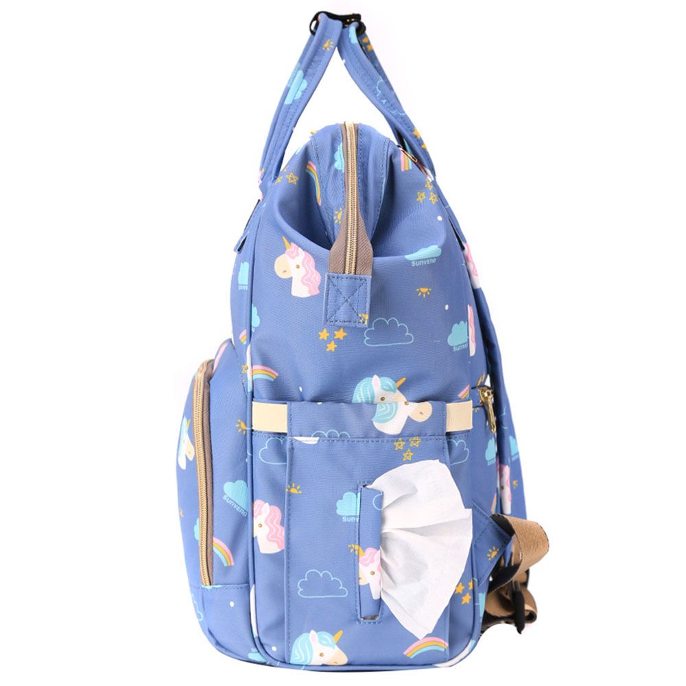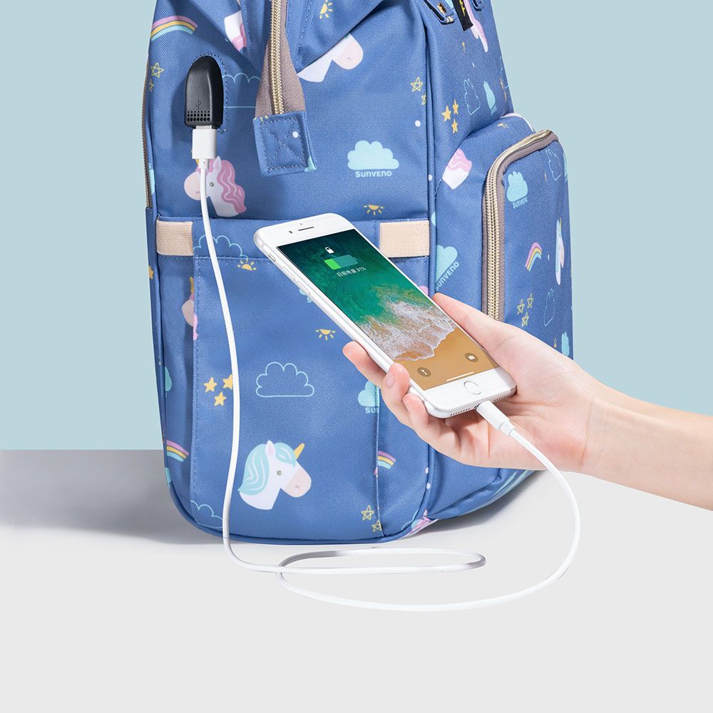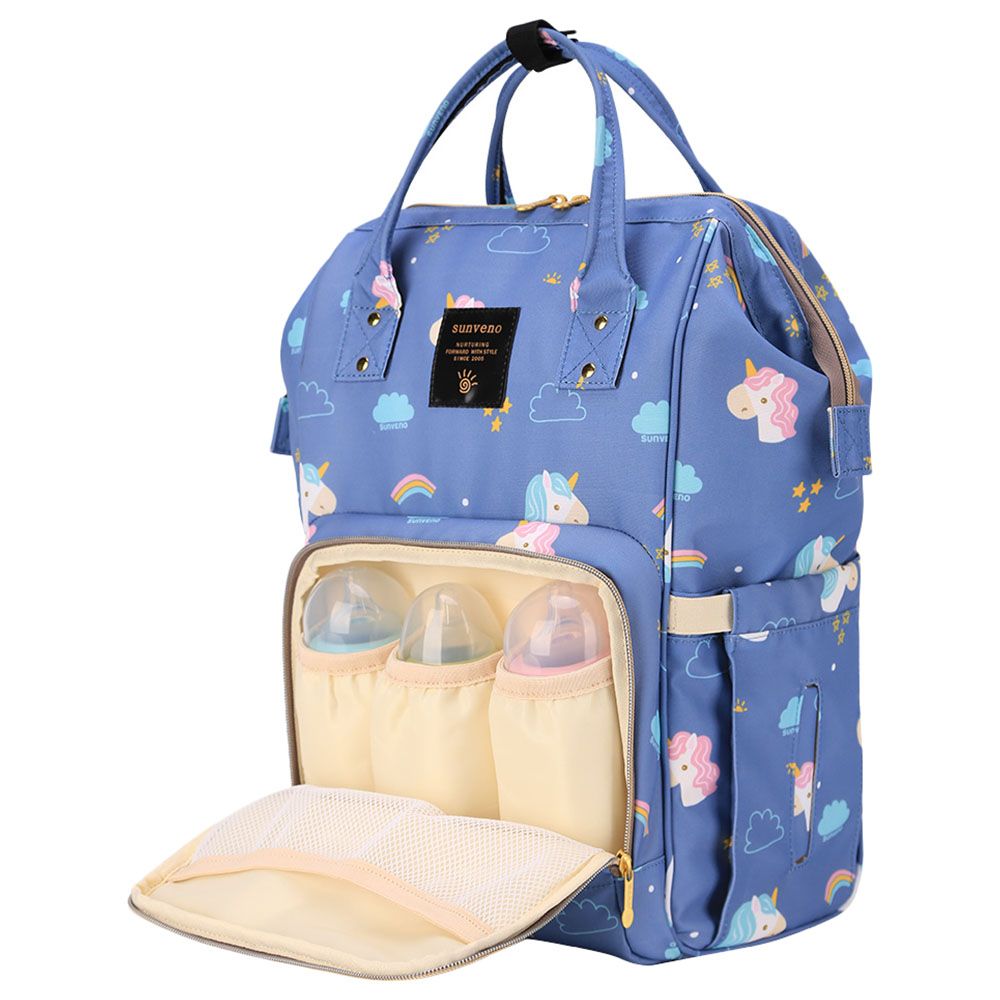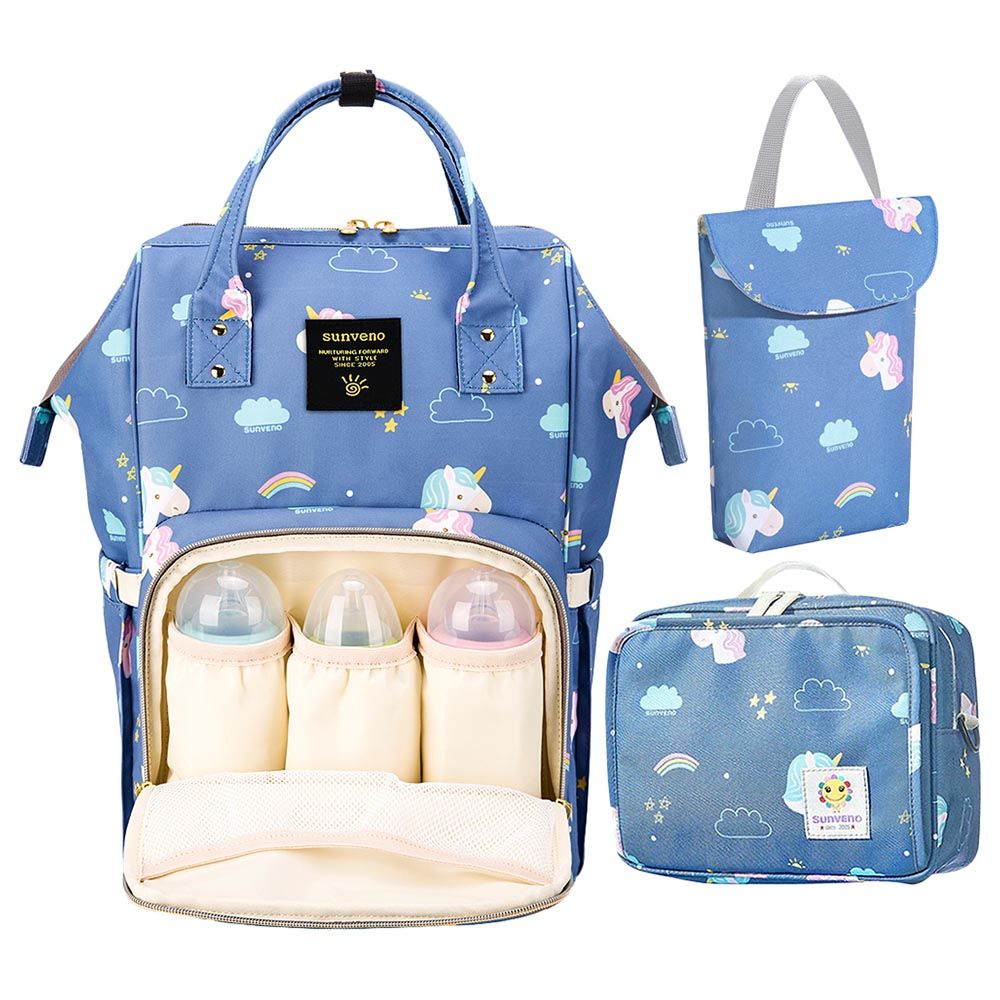 Packing Includes : 1x sunveno diaper bag with usb - unicorn blue, sunveno diaper changing clutch kit large - blue , sunveno diaper organizer wet/dry bag - unicorn,