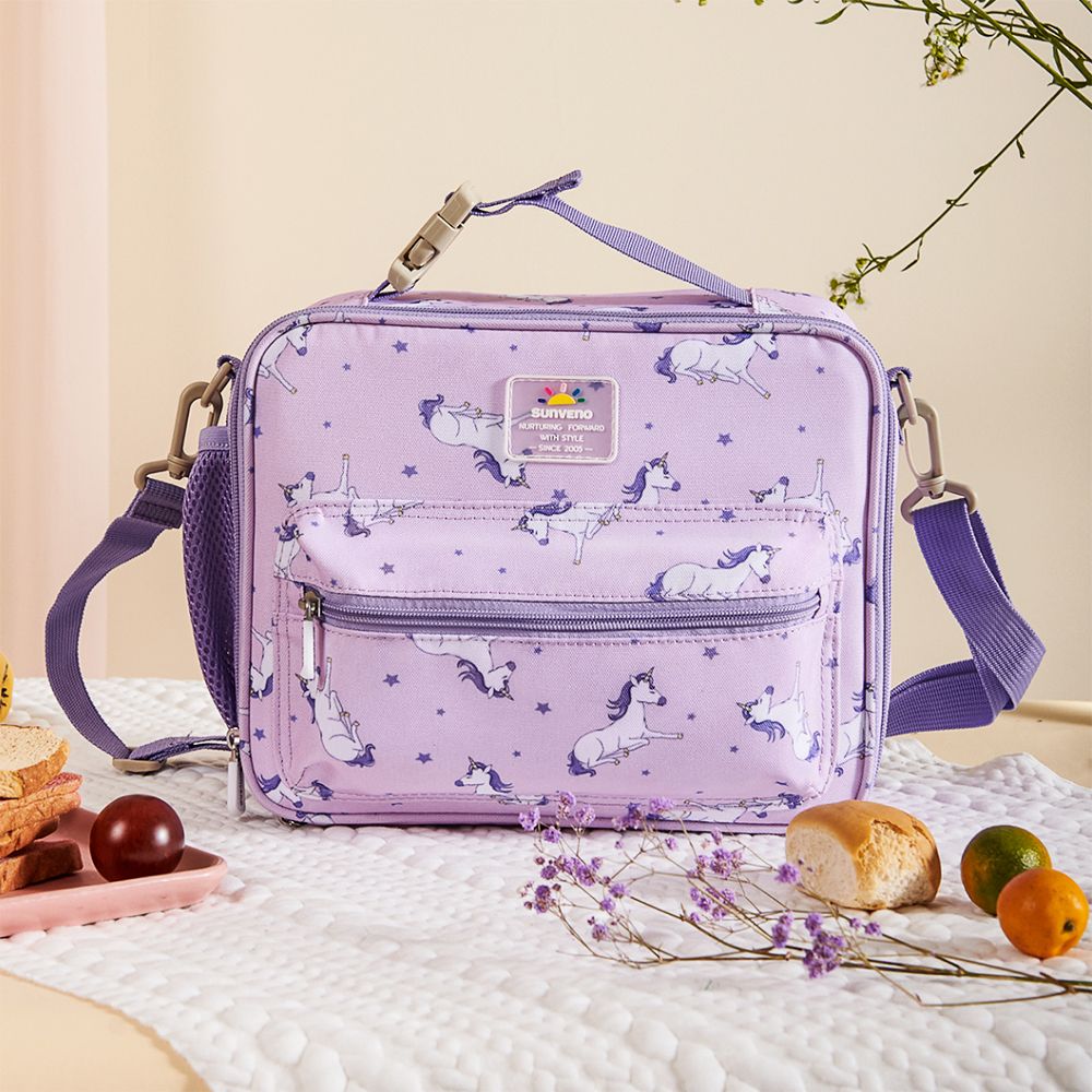 Introducing the Sunveno 5.5L Lunch Bag, a must-have accessory specially designed in Dubai. Crafted from premium water-resistant materials, this bag features a durable 100% polyester exterior and a 100% EVA interior, ensuring your food stays fresh and protected. Adorned with a cute Unicorn print design, it adds a playful touch to your lunchtime routine. Ideal for back-to-school and picnics, this Sunveno lunch bag combines functionality with style for on-the-go convenience.