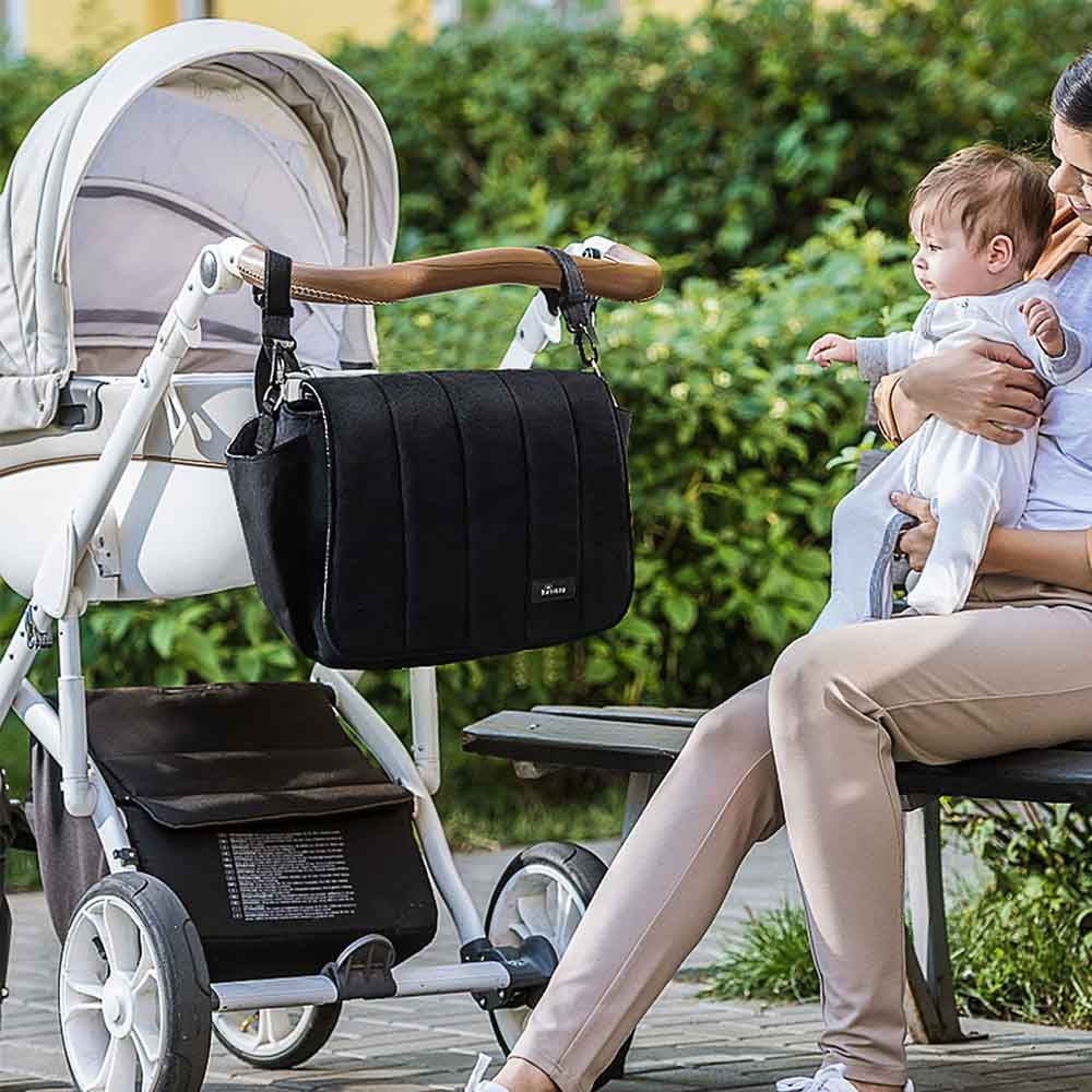 The two internal pockets have insulated bottle holders to keep the food cool or warm. The side pockets have enough space to keep additional bibs, spoons, or soothers. Keep yourself hands free with stroller hooks with Adjustable shoulder strap which makes it very comfortable during your travel. Perfect for Gifts to new moms, baby showers, kids' birthday.