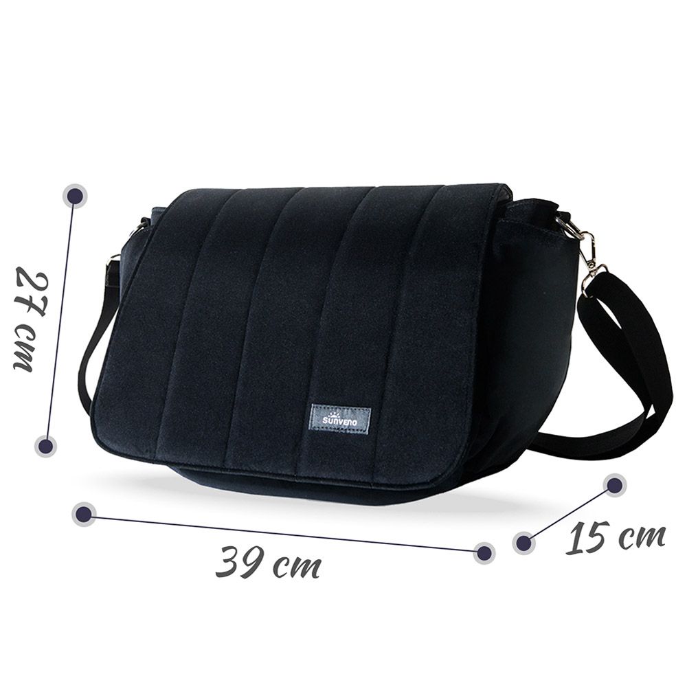 A Sunveno Velvet Stroller Diaper Bag is here. We understand your need for a diaper bag which provides both functionality and style. This gorgeous Bag Flaunts Maternity Messenger style. Lovely subtle colours and soft waterproof fabric is the first choice for all mums. Comes with wide compartment Velcro lid opening with 6 pockets is a perfect organizer shoulder style bag you should have! Two Big sideways pocket to keep things in place.