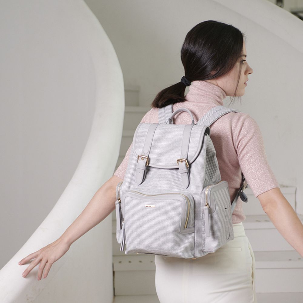 Our very own super convenient Sunveno Diaper Backpack is transformed into the most Premium and Fashionable yet so handy Diaper Bag! This Sunveno Mamma Diaper Bag comes with beautifully woven Tweed Fabric, giving it an amazing touch feel and a fashionable look. The opening with Vegan Leather handles and beautifully crafted Steel zippers give this bag a fashionable look. The unique features being the tissue/wipes holder side pocket, both of these allow easy access when you need tissues and clothes handy. Spill - proof dual bottle holders in the front pocket of the bag. Zipper less magnetic opening! A well - lit interior with designer fabric. Club this bag with Sunveno Best Sellers like Disposable Baby Bibs, Portable Milk Bottle Warmer, Wet Wipes, Stroller Hooks or Diaper Changing Clutch Kit! Elegant and beautiful bag will make you fall in love with it!