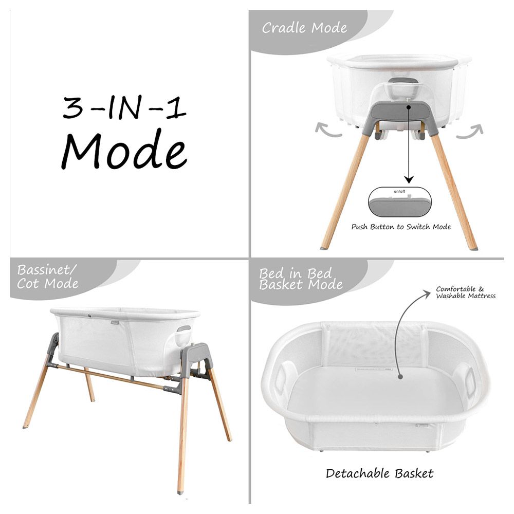- Multi-functional: Cradle, rocker bassinet, or cozy napper cot