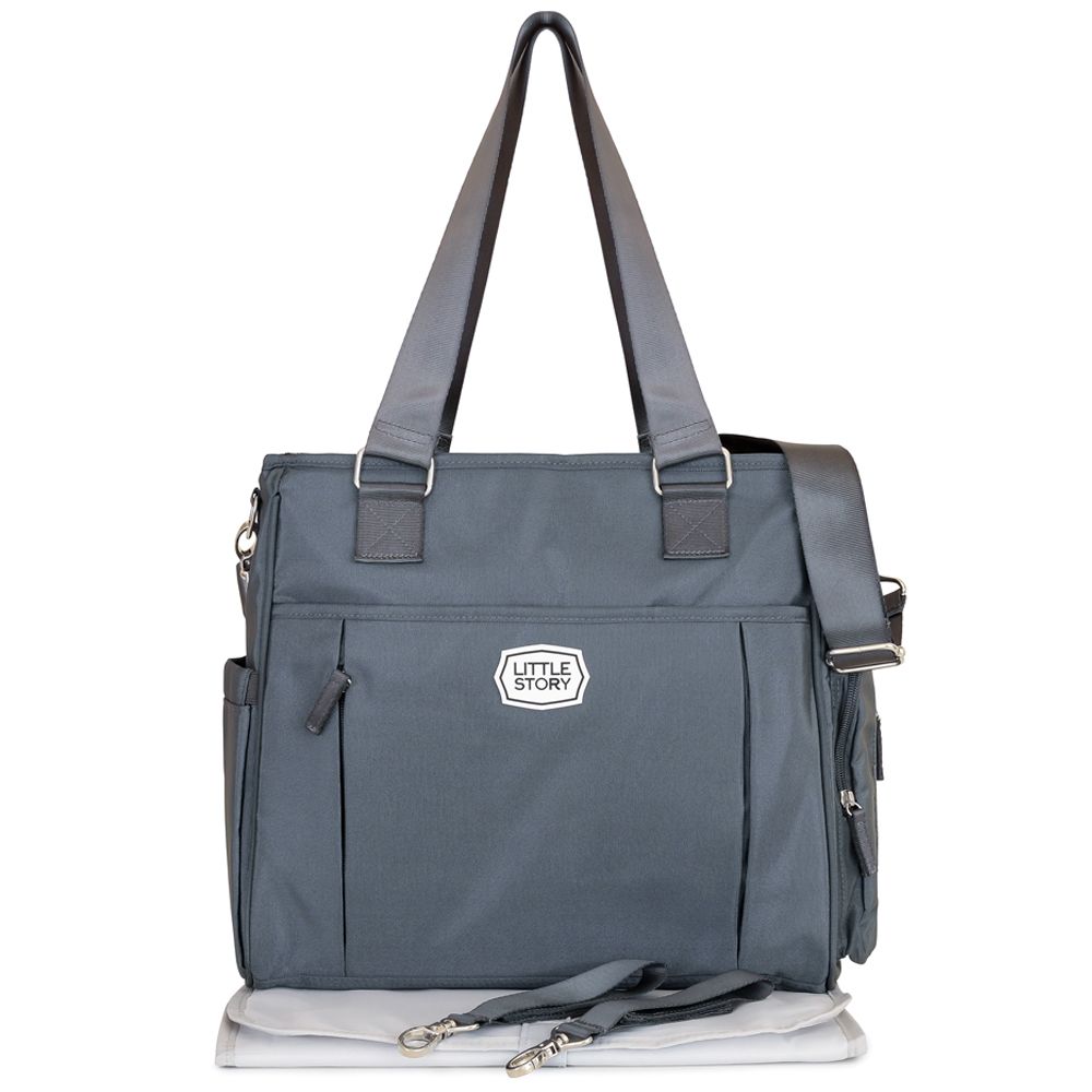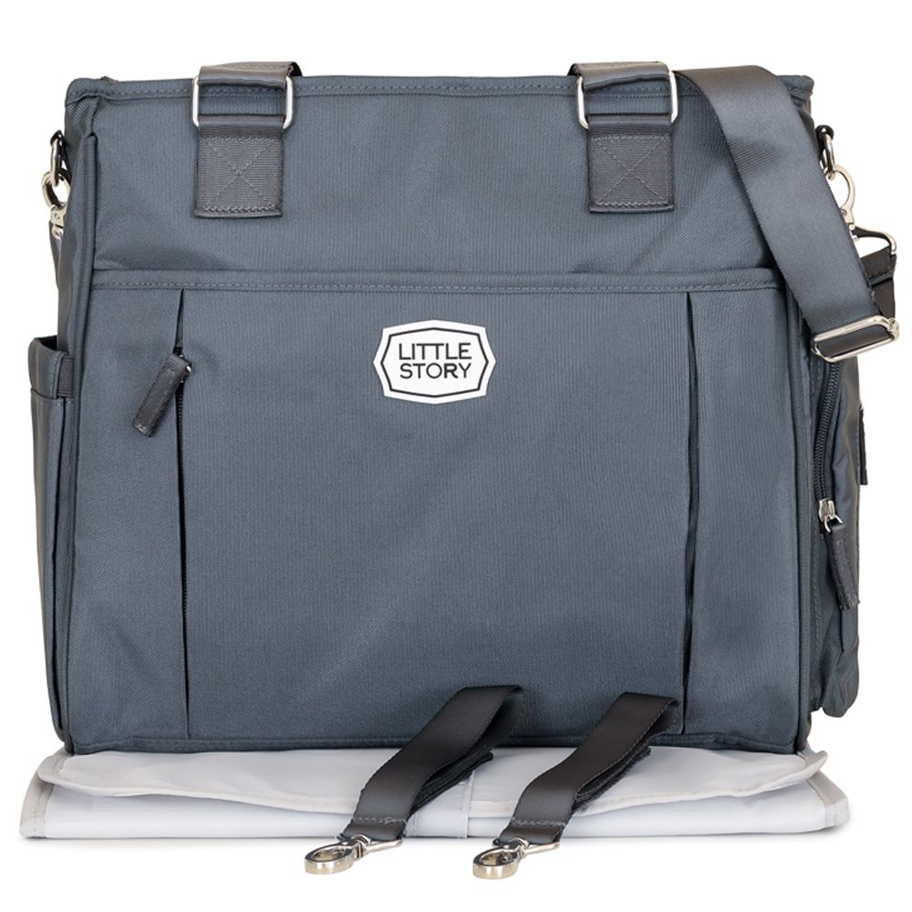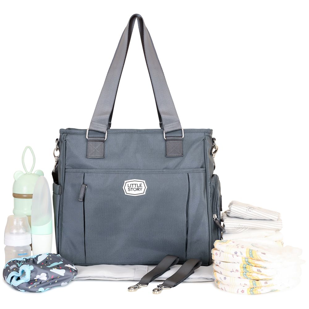 Perfect Mamma Bag with enough pockets for neatly organizing the Baby Essentials. Super Luxurious Diaper Bag, perfect for travel or full - day outings. 100% waterproof Fabric is strong and flexible, easy to wipe clean. This Little Story Mamma Nappy Bag helps you to keep everything organized and always upright when you need it. Bag also comes with a waterproof changing pad and detachable hooks. Two Side pockets for Wet Wipes and Bottles
