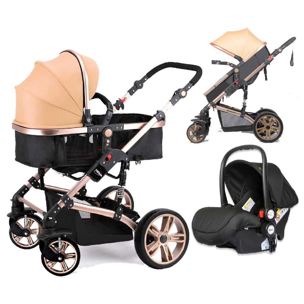 Teknum Travel System is ultimate package of 4-in-1 Travel. Teknum 3-in-1 pram stroller by Story, makes your baby travel in luxury and will surely give baby a royal look! Made from highest quality of organic linen, this is most convenient for baby skin. This premium Stroller in a 3-in-1 gear with wide bassinet, multi-position seat, fully adjustable canopy and handlebar, easy installation and collapse, stable aluminium alloy frame gives it a premium feel and shock absorbing tires offer the highest safety to babies. The umbrella like canopy and a wide storage basket below makes it a winner of all. Teknum Infant Car Seat by Story is a perfect combination with 3-in-1 Pram Stroller. This Baby Car seat is compatible with all Teknum 3-in-1 Pram Strollers. The Ergonomically designed Baby Carrier Seat brought to you is flexible and portable keeping Infants safe and gives them a feeling of comfort. The Car seat has a cushioned breathable back support along with the foot cover. A wide canopy to keep the child safe from sun. It is very easy to clean and soft on baby skin. Due to its light weight, it's very easy to install in the car using the seat belt. Perfect gift for Baby shower and New Born! Carry your newborn in this safe, comfortable seat and your baby will love it! Story is a Product by Teknum.