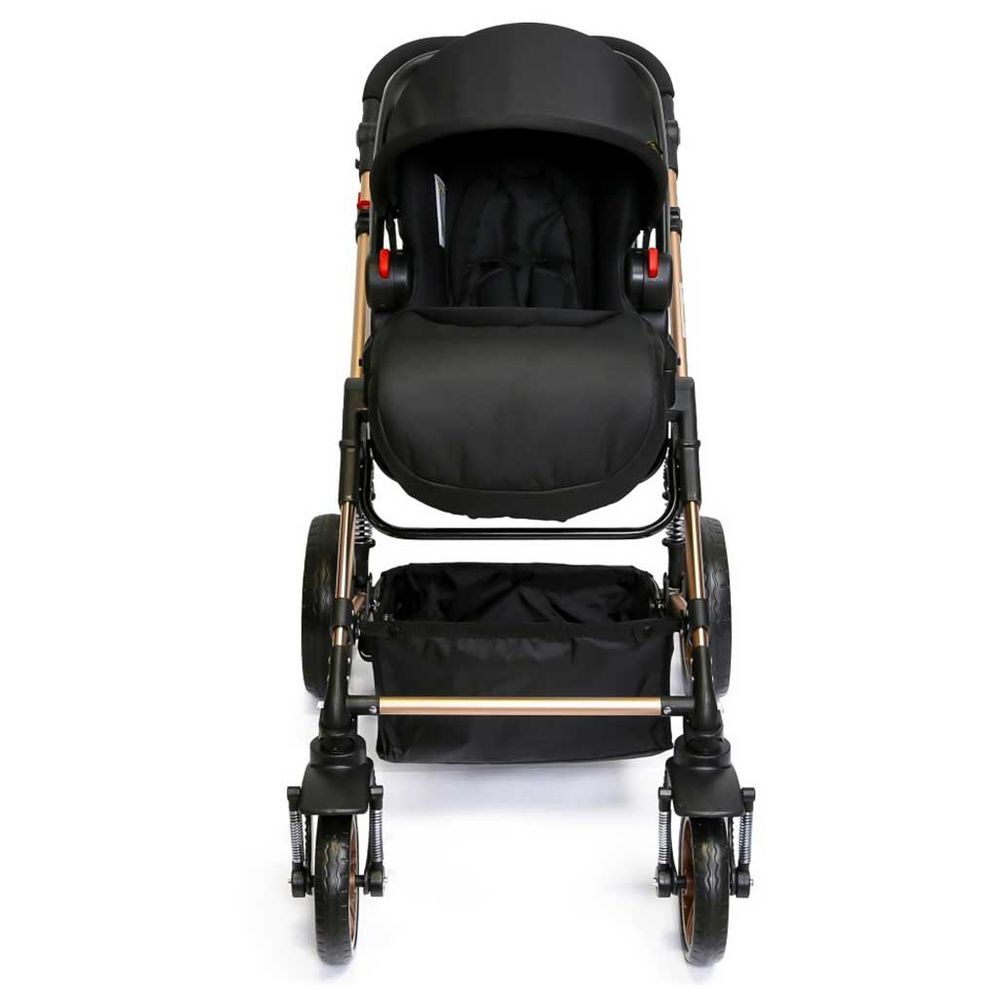 - Comes with a cozy, ergonomic car seat for infants 0–12 months (0–13kg) that snaps onto the stroller frame or secures easily in the car with a seatbelt