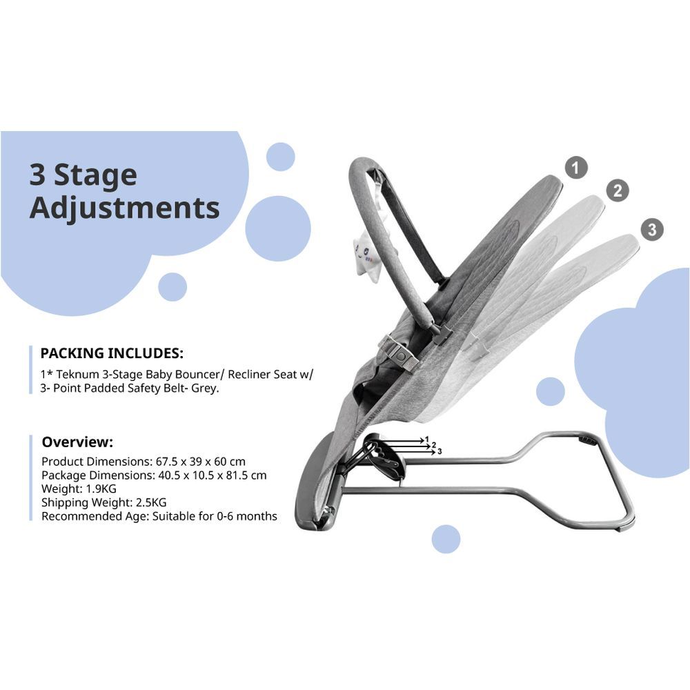 Teknum 3-Stage Baby Bouncer/Recliner Seat - Grey