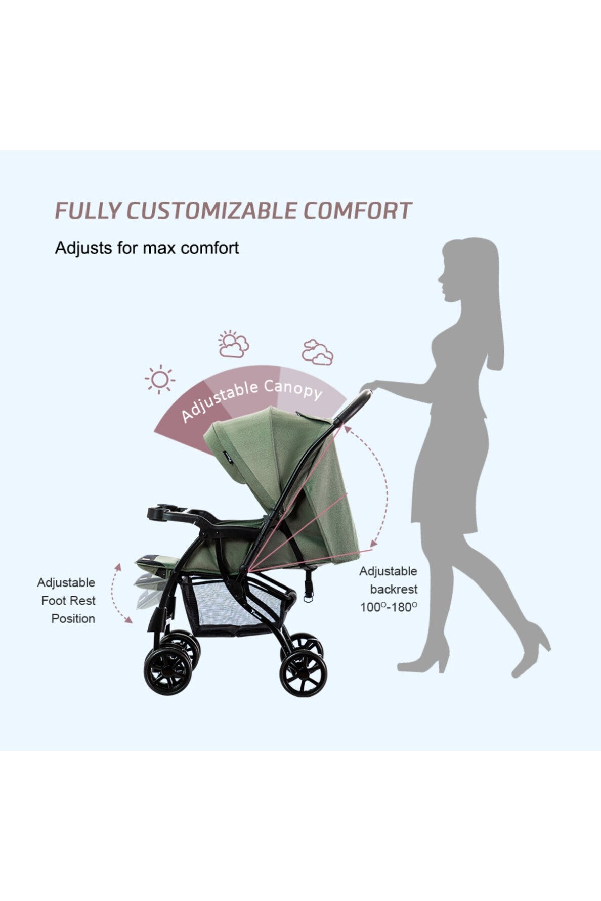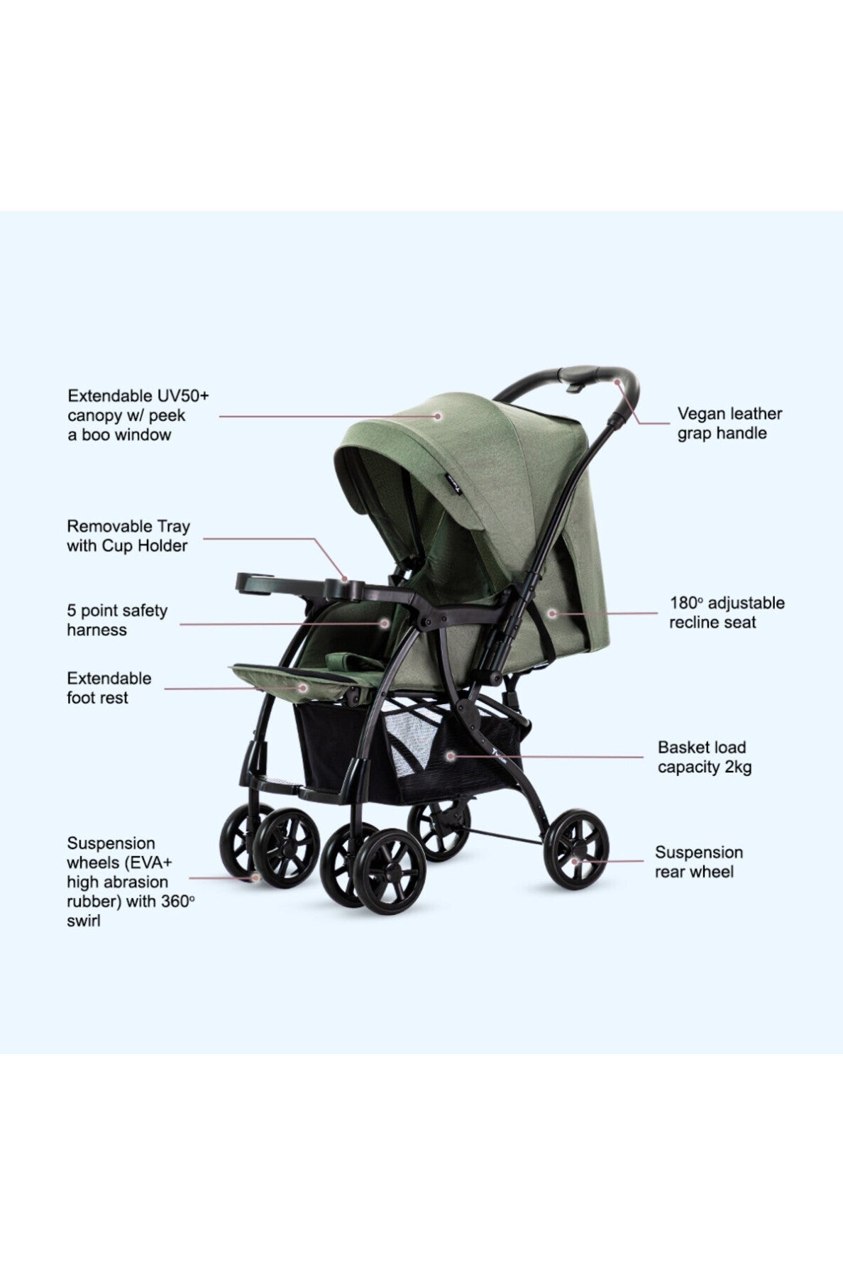 - LOAD CAPACITY : Upgraded rolling load capacity supports up to 30Kg. Also, maximum quiet for your baby. Keep your baby safe and stable comes with safety belt.