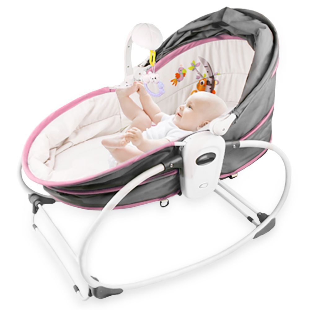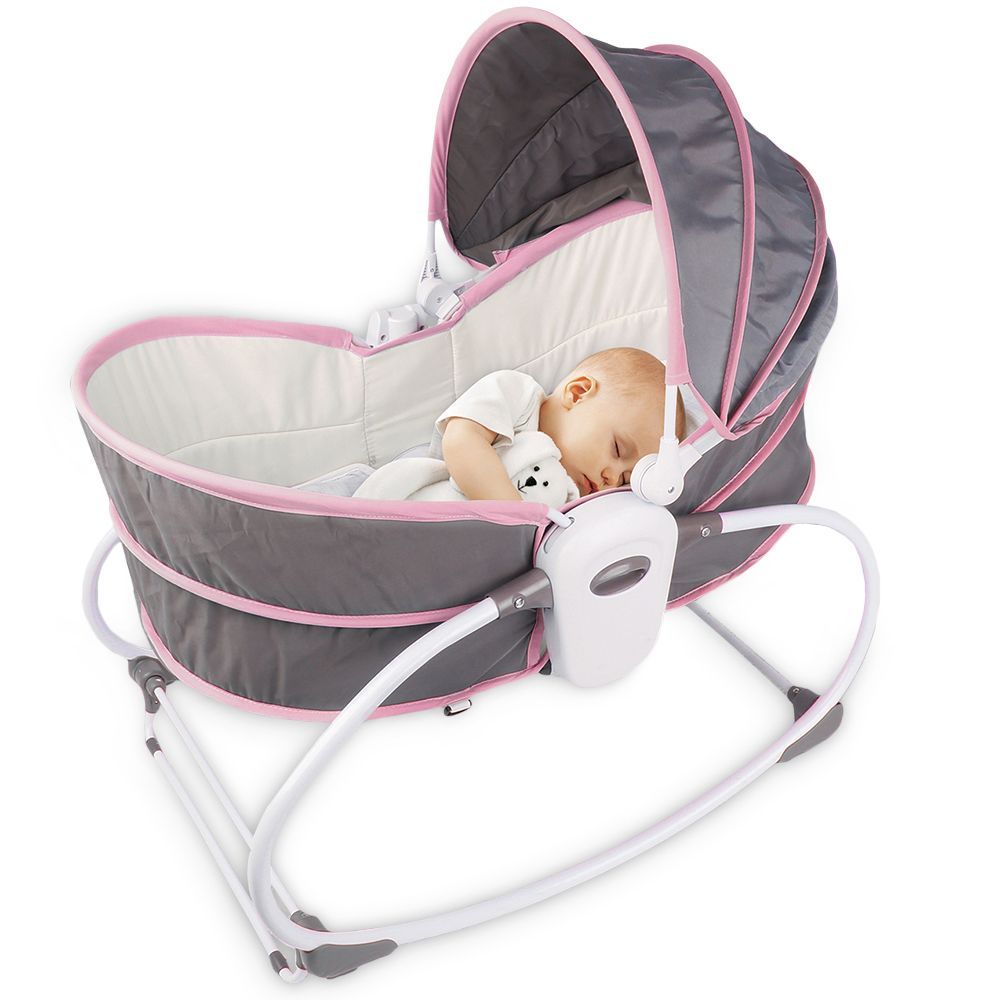 Teknum 5-in-1(Rocking Bassinet/Rocking Chair/Baby Basket/Crib to Accompany in Bed/Cozy Reclining Chair) Rocker Bassinet is a 5in1 solution from Playing to Napping & Feeding to Travelling. Unique design that easily converts Rocking Bassinet to Rocking Chair/Cozy Napper or Crib to Accompany in Bed/Baby Basket with just one click with complete safety assurance in each mode with suitable belt to hold you baby.3 level backrest adjustment can fully meet the baby's life and groWithh needs with 3 Reclining Positions that are perfect for playing, exploring, napping, feeding and Easy detachable sleeping basket can be removed and used alone, The Soothing Vibration Effect and Music Box has multiple music to soothe the baby's mood. Easy to Store and a Great gift for baby shower to get back mother's delicate sleep, giving the baby a comfortable space to sleep naturally.