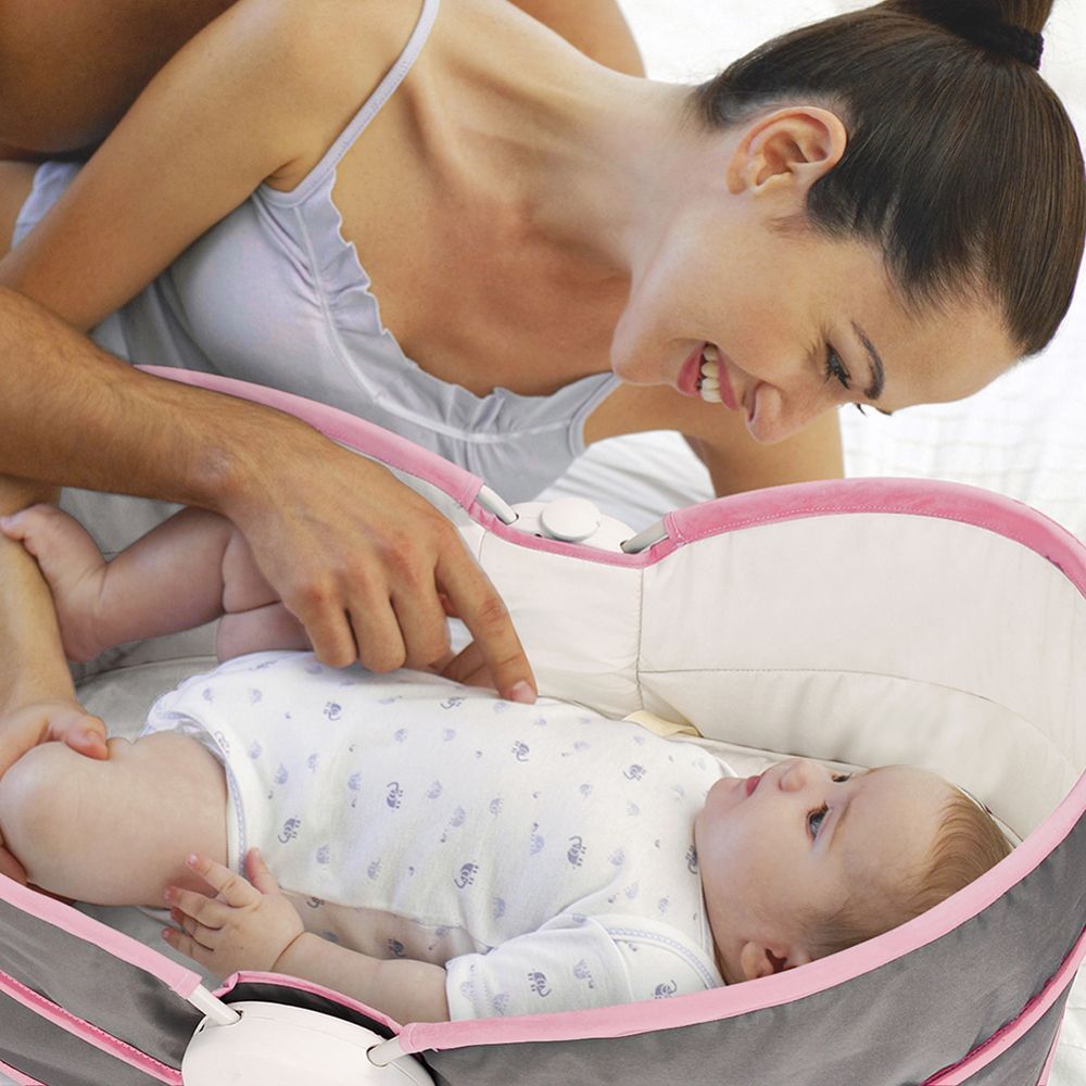 - Transforms into a rocking chair, cozy napper, crib, baby basket, or bedside sleeper with one easy click