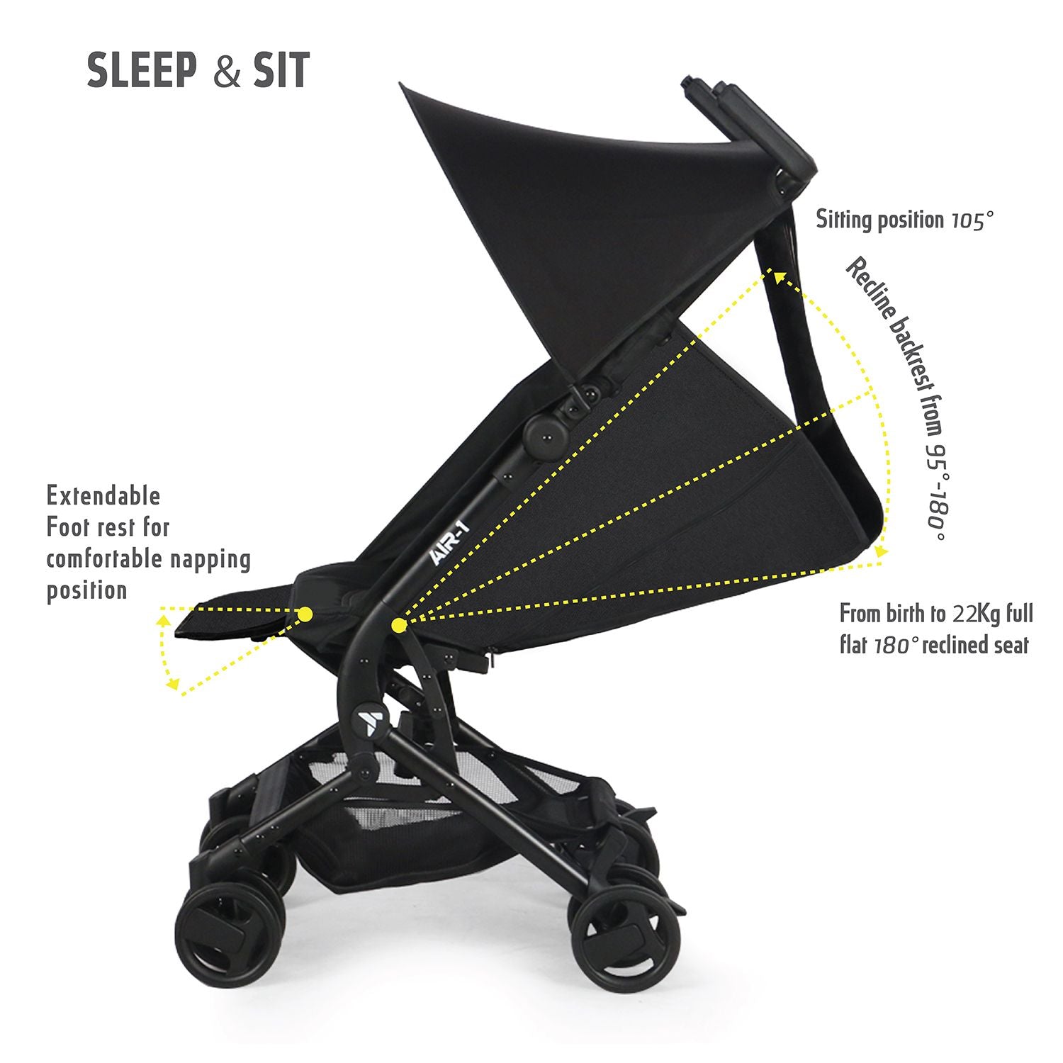 - Multi-position reclining seat from 95 Degree to 180 Degree, allowing for comfortable sitting and sleeping positions.