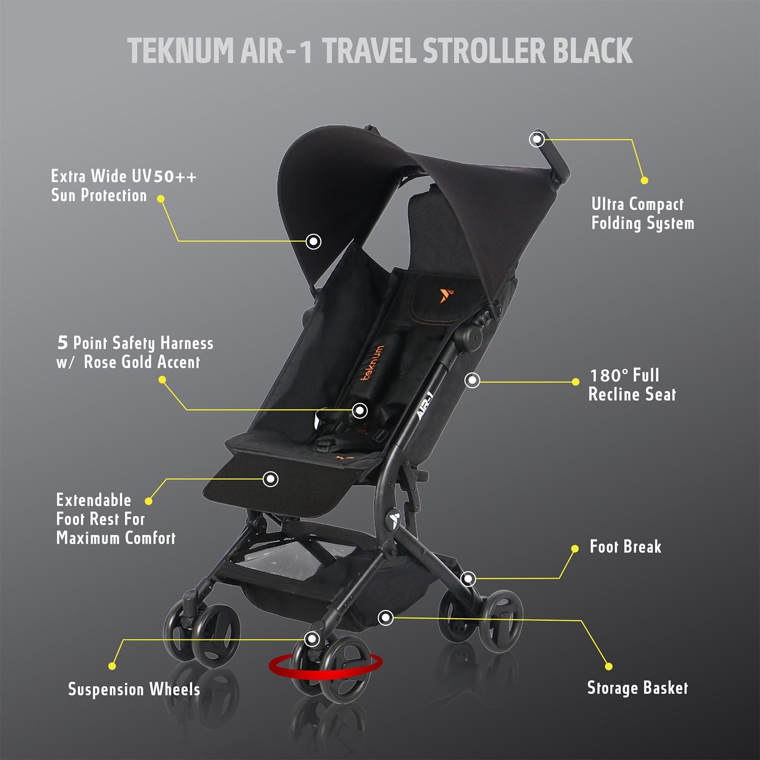 Teknum Air-1 Travel Stroller With Carry Backpack - Black
