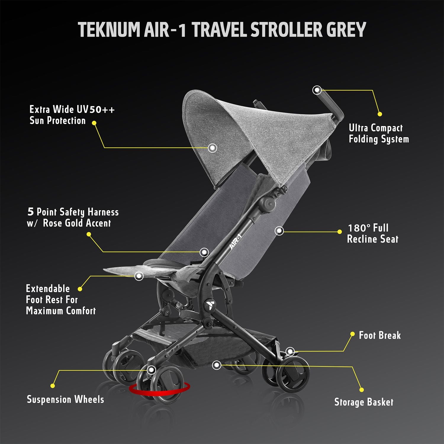 Jet-setting with your little one has never been easier! The Teknum Air-1 Travel Stroller is your ultimate travel companion, combining style, comfort, and convenience. Weighing just 5.5 kg, this ultra-lightweight stroller features a one-second fold mechanism, transforming it into a compact, backpack-shaped package—perfect for airplane cabins. The wide seat base and multi-position recline (95 Degree to 180 Degree) ensure your child’s comfort, while the 5-point safety harness and UV50+ canopy provide safety and protection. Maneuver effortlessly on various terrains with its double wheels, and enjoy the added convenience of an extended footrest and adjustable handlebar. Suitable for children from 6 months up to 22 kg, this stroller includes a high-quality carry bag convertible to a mommy backpack.