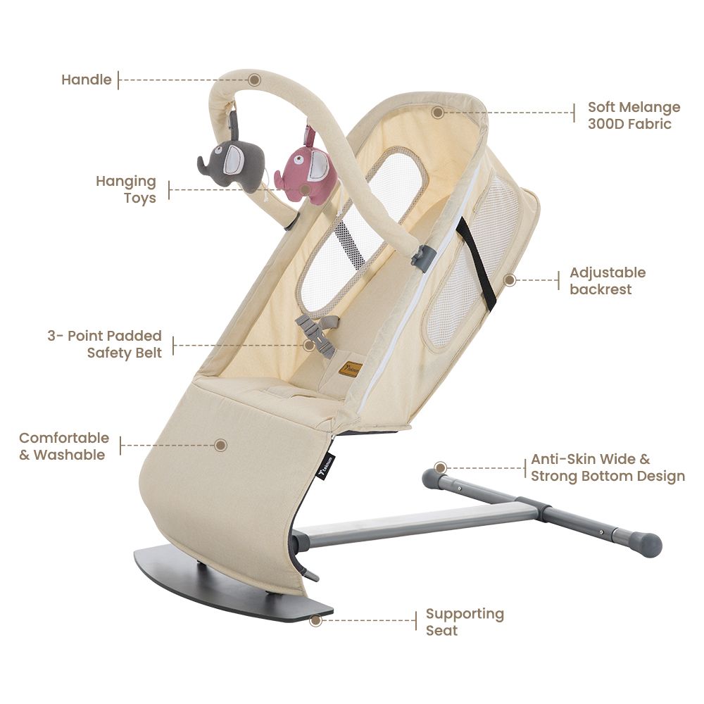 Teknum Baby Bouncer / Recliner Seat With Grab Toys - Ivory