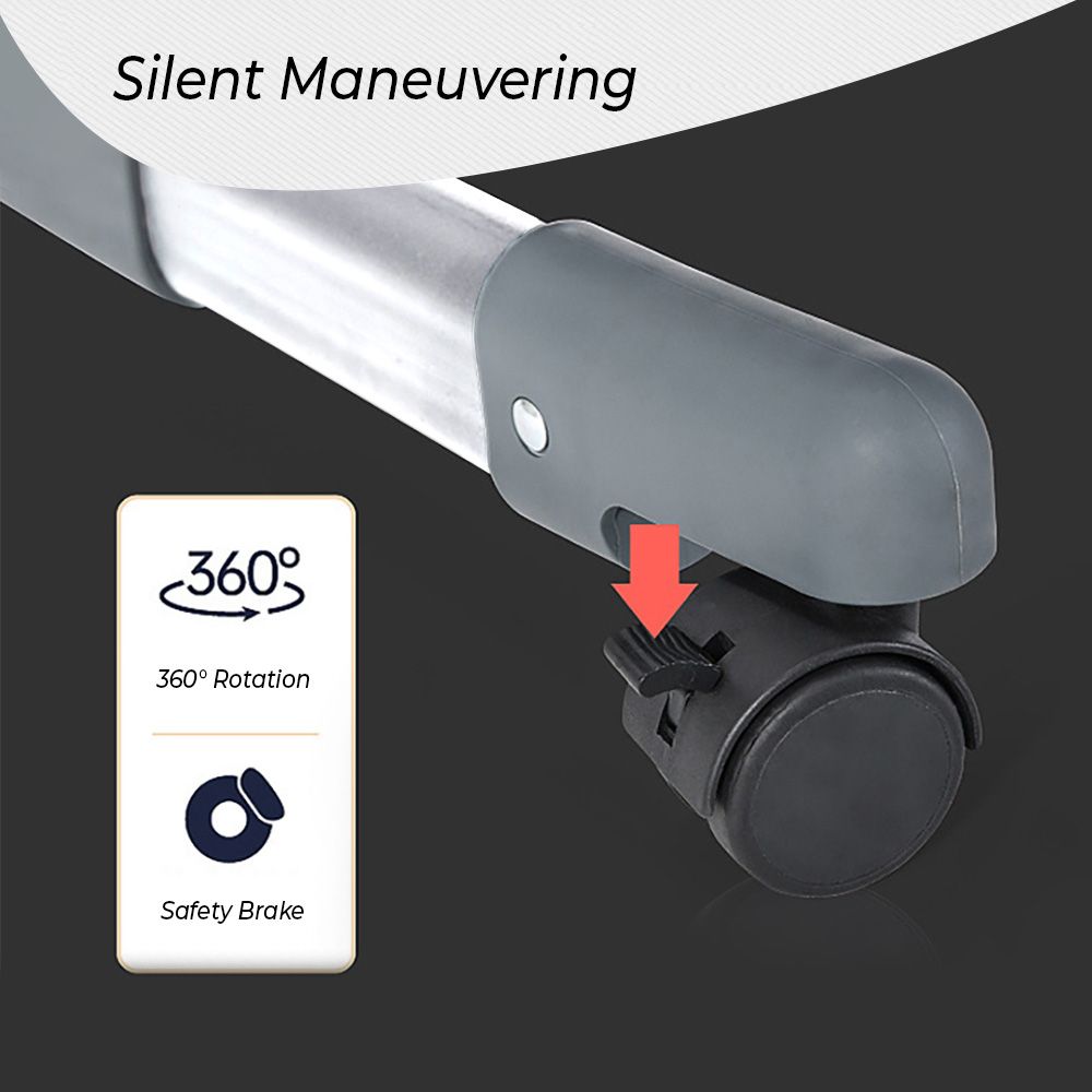 - Built-in wheels with brakes make it easy to move from room to room without scratching floors