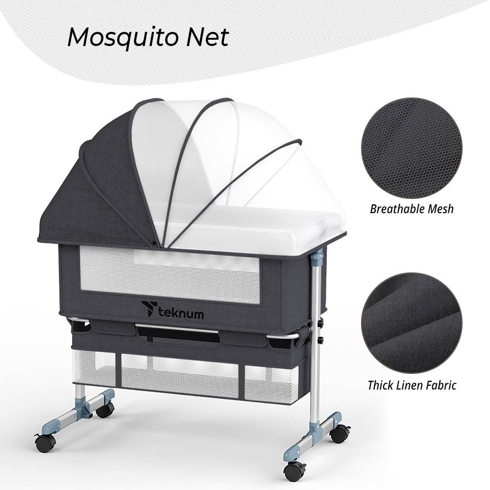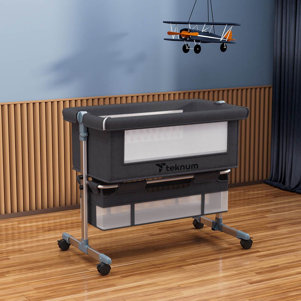Teknum Bedside Crib is the best for both mum and the baby. The Newborn recognizes mum with the mother's scent and breathing sound. This bedside crib can be conveniently be placed next to the bed and lock wheels, so it doesn't move