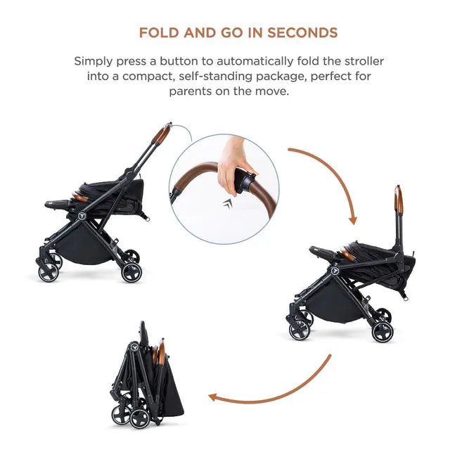 - Auto-Fold Feature: Single Hand, one button push to Auto-fold and making it a Compact Stroller.