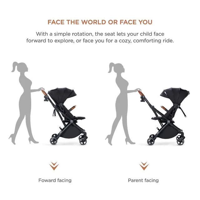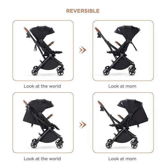 - 360° Reversible Seat: Enjoy the flexibility of a reversible seat with effortless one-button folding. Whether your baby faces you or the world, switching directions is seamless—perfect for bonding or exploration.