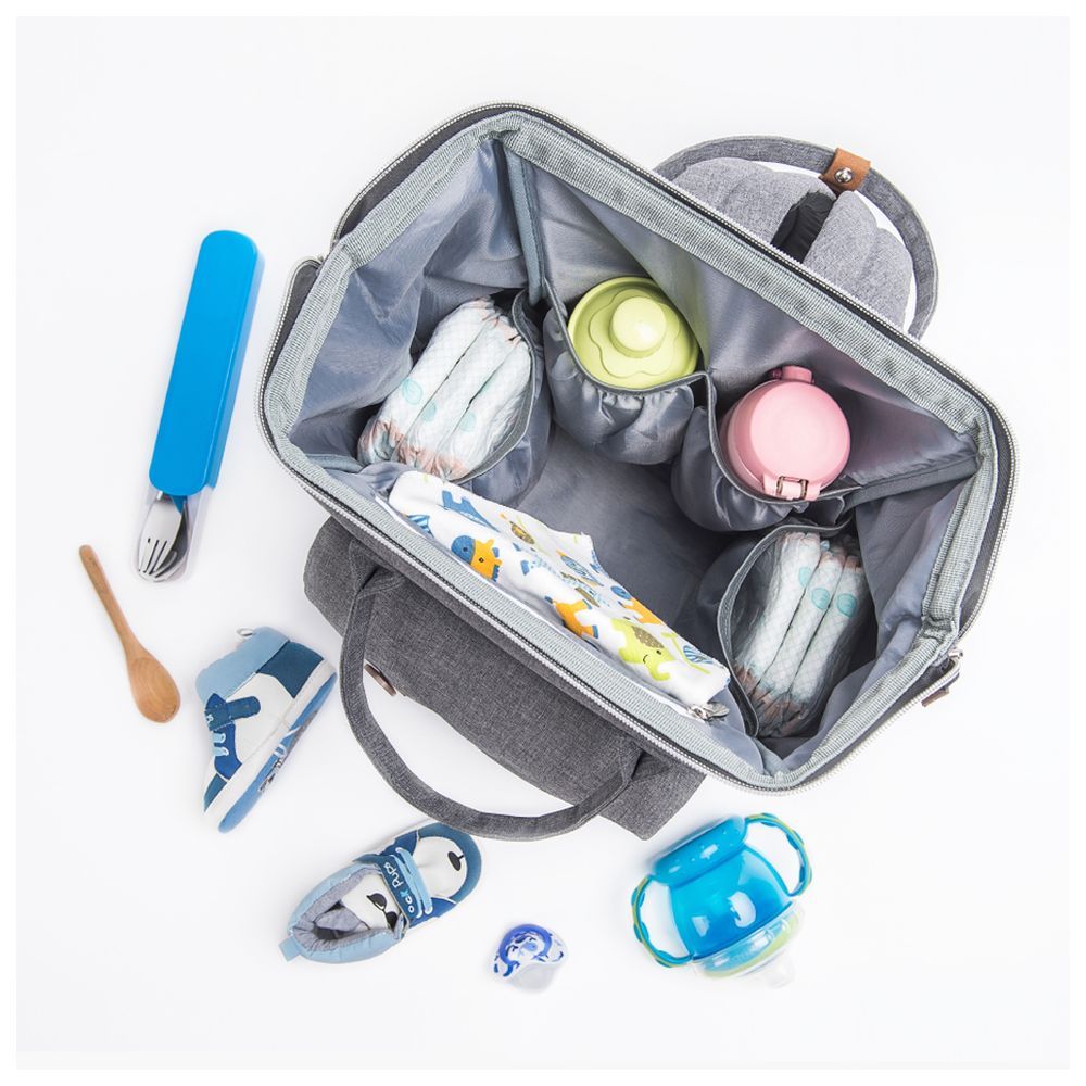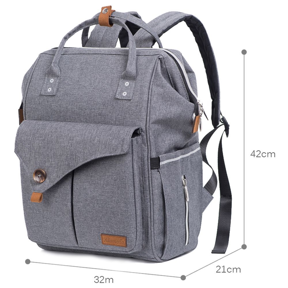 A stylish Unisex Diaper backpack is here from Alameda. We understand your need for a diaper bag and backpack which provides both functionality and style. The grey color is good for both Mums and Dads. All in all 10 pockets are what a perfect organizer backpack should have! Keep yourself hands free with detachable stroller hooks which comes free with the bag. A diaper changing mat is also included for easy nappy change. Perfect for Gifts to new moms, baby showers, kids birthday, Christmas and Halloween.