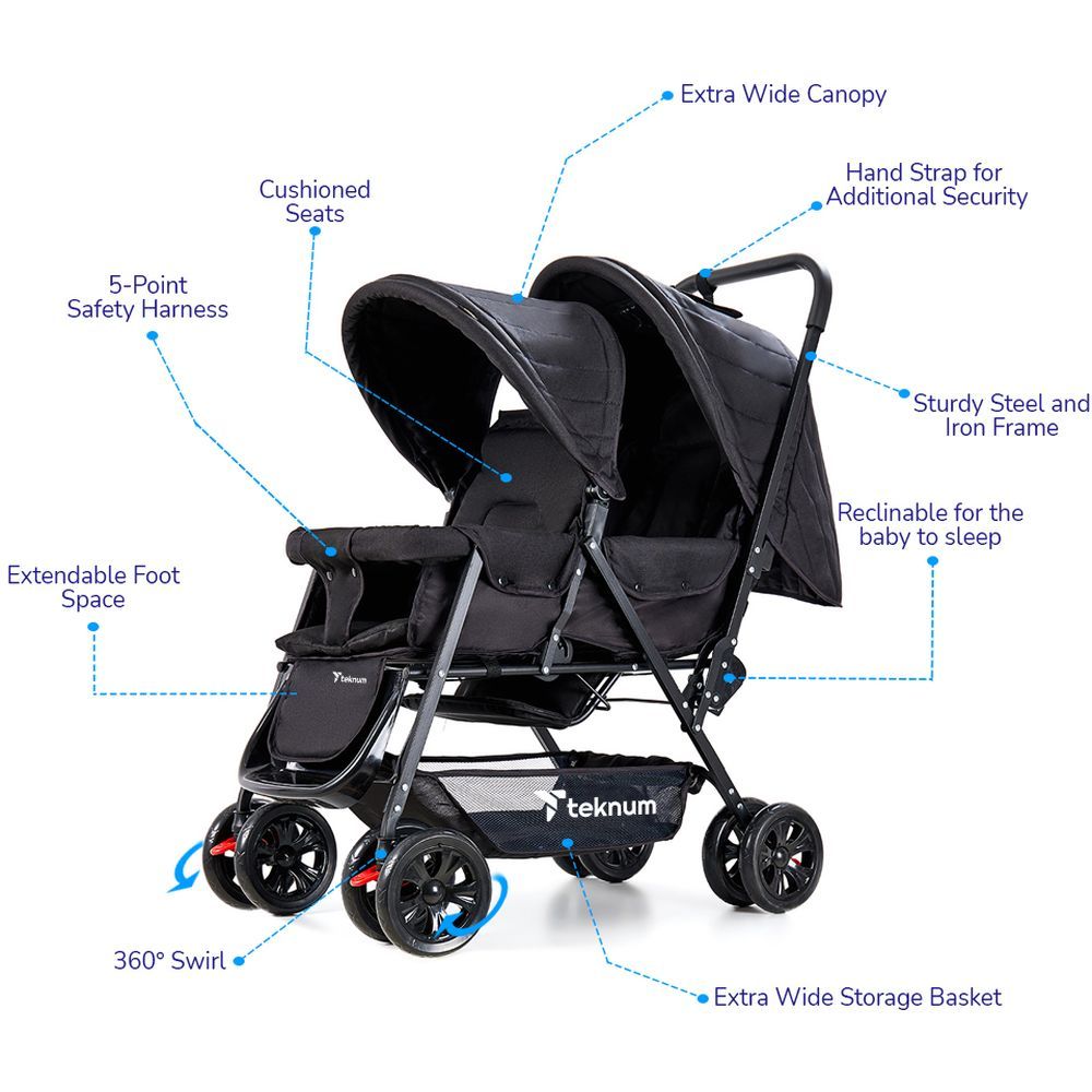 - Lightweight yet sturdy frame built to handle double the fun with ease. Diaper bag : Stylish unisex design that suits moms, dads, boys, and girls—because fashion shouldn’t skip parenting.