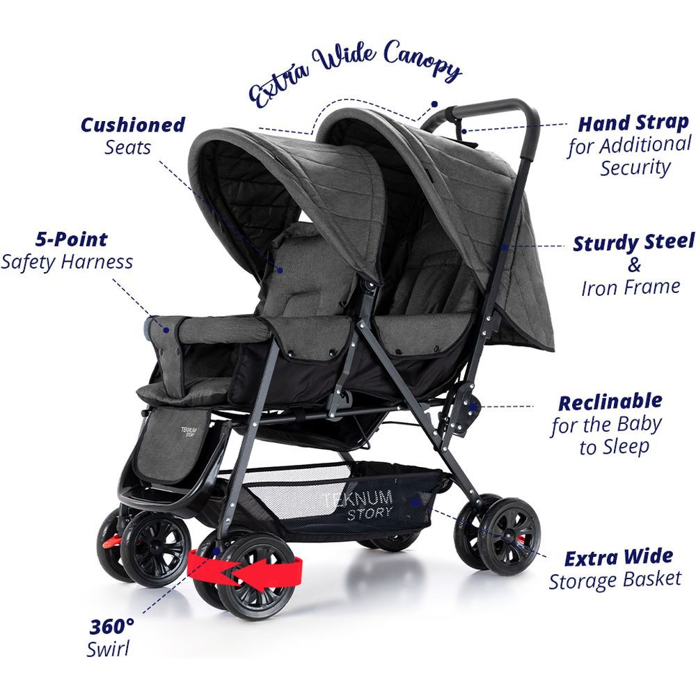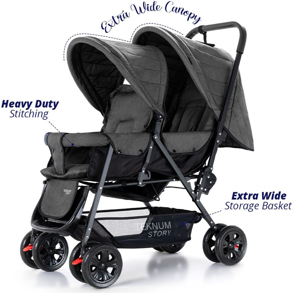 - The Story by Teknum double stroller is fit to use for kids up to 3 years for two babies each up to 15 kgs (0-15kg X 2)