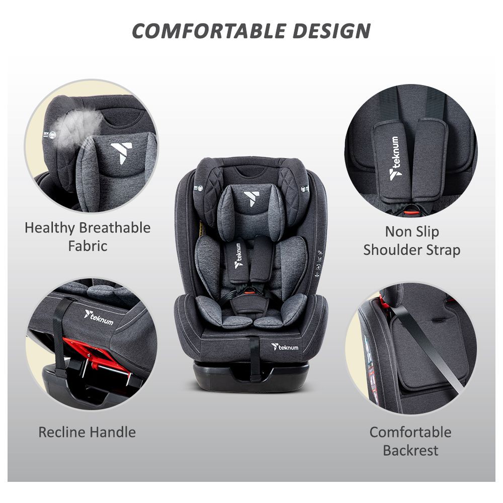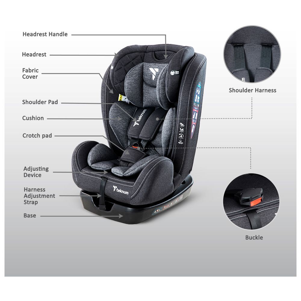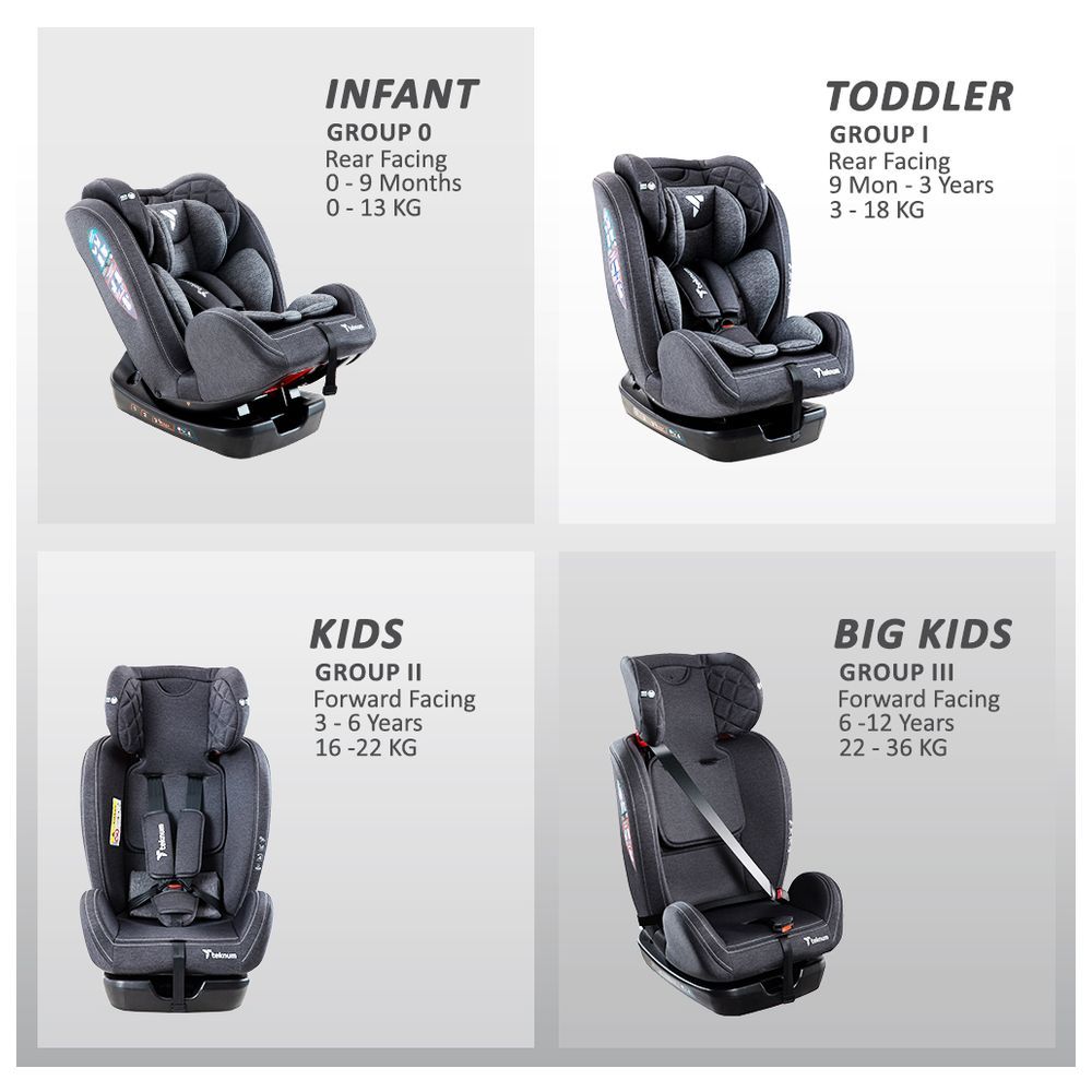 - Adaptable Design: The Teknum Evolve 2 360 Car Seat is suitable for Group 0, 1, 2, and 3, making it perfect for newborns, with a weight capacity of up to 36kg.