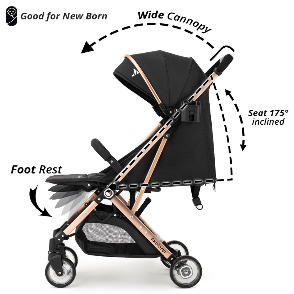 - Teknum Explorer Travel Stroller in Black is a versatile, lightweight stroller designed for urban parents seeking convenience, comfort, and safety during daily outings or travel.