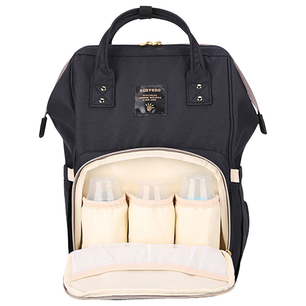 Adjustable canopy and mosquito net is designed to protect your baby from harsh weathers. You can always observe the status of your baby through a patch of Net Like window Pocket. the footer is adjustable as per the baby needs and coffee cup is added advantage for the mum and the bub. The Drive system is so flexible, smooth and easy to push the baby single handed. The rough roads, the Grass, the Slopes, the Desert - Drive anywhere, this Stroller provides a two way comfort - both for the baby and the mum who is pushing the stroller. This Sunveno diaper bag comes with beautiful colors to make this extremely spacious bag, turn heads around. The wide zipper opening with metal support and beautifully crafted golden zippers give this bag a royale look.
